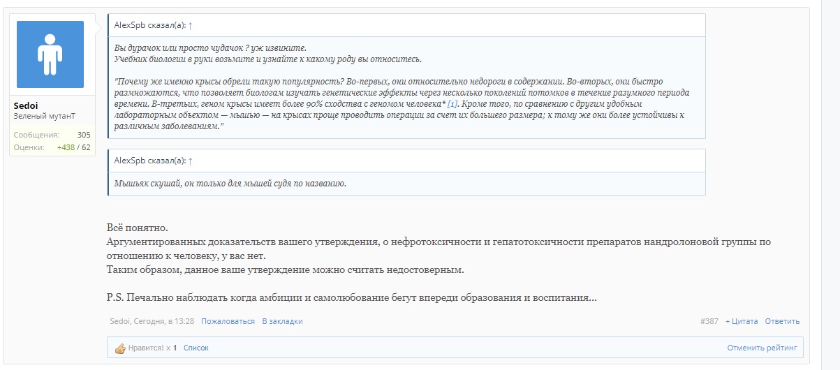 зачем мне читать про побочки Нандролона? или частоту их проявления изучали на крысах или может быть кроликах?