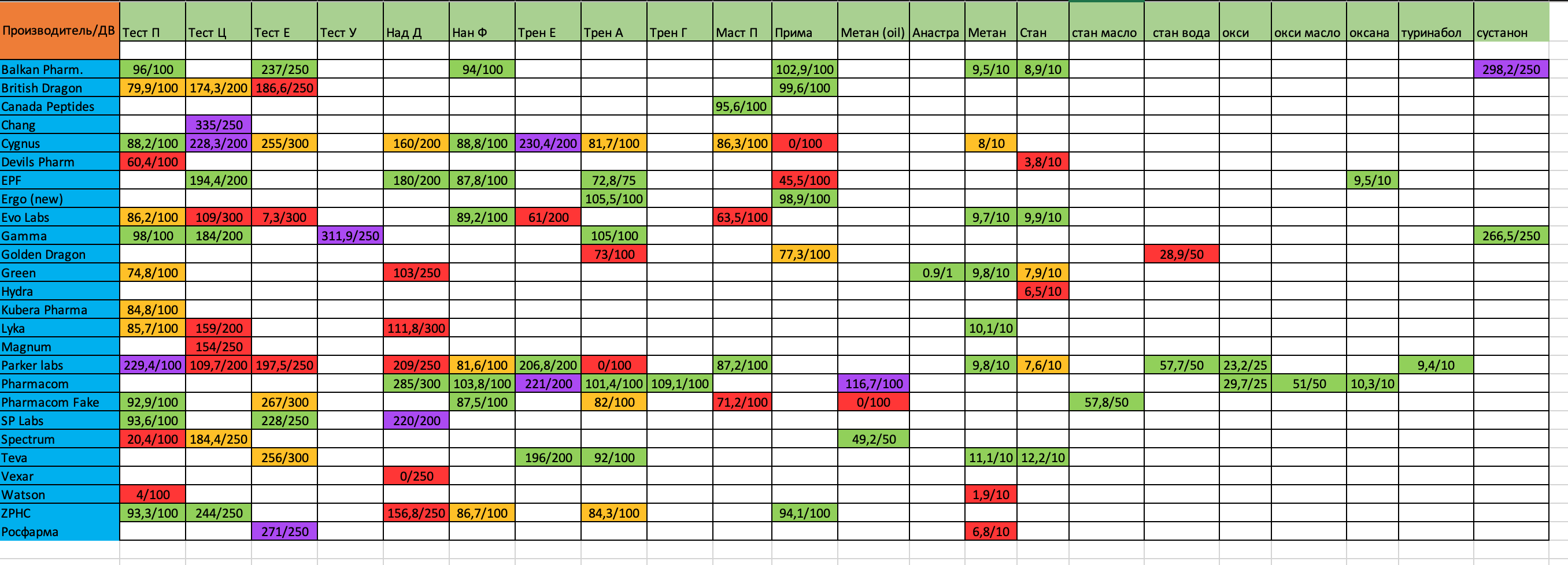 Дека zphc на анализах была фейк,так что в таблице не актуальна эта позиция,как и поддельный спектрум проп