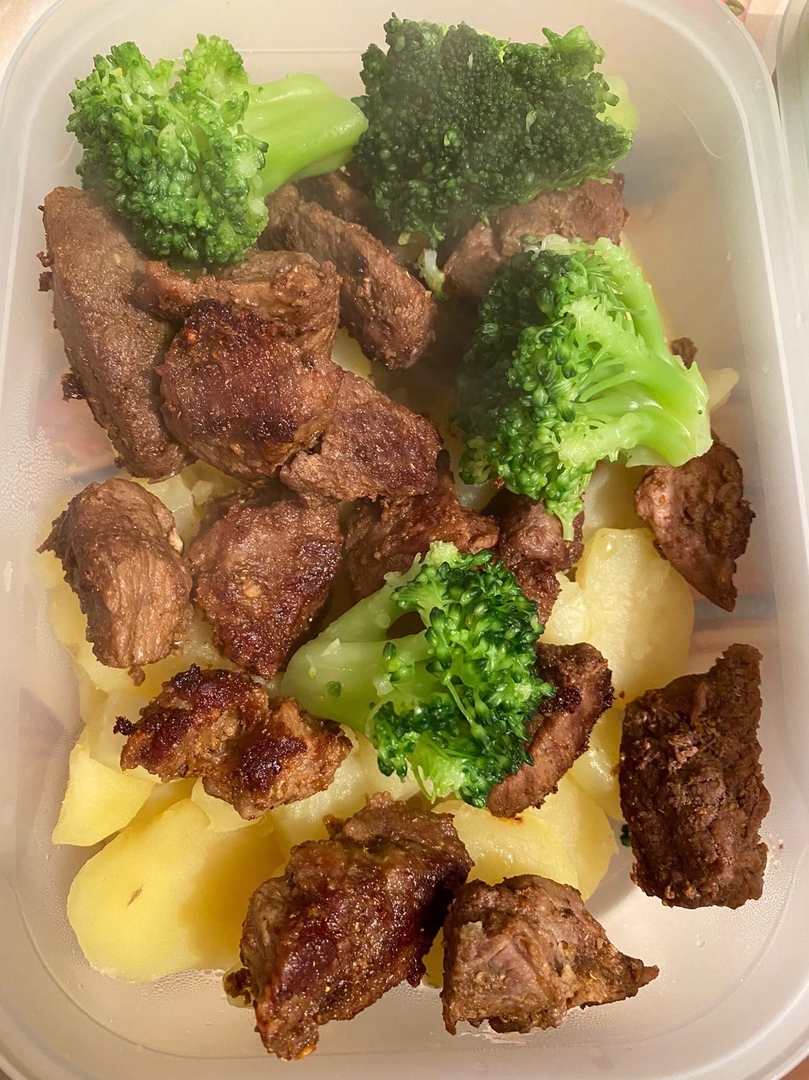 Итак, подсушили меня до 110.5 кг. Сейчас поменяли рацион, добавили картошку, стейк семги, мед. Убрали почти весь спортпит, кроме бадов и убрали на время кардио.