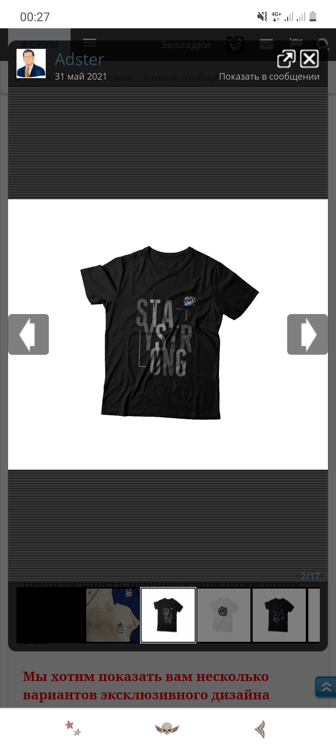 Должен отметить, что наши футболки нельзя купить, мы не продаем их. Их можно либо выиграть в различных конкурсах на форуме, в нашем телеграмм чате, в нашем паблике vk или в нашем инстаграме. Либо заслужить теми и иными деяниями.