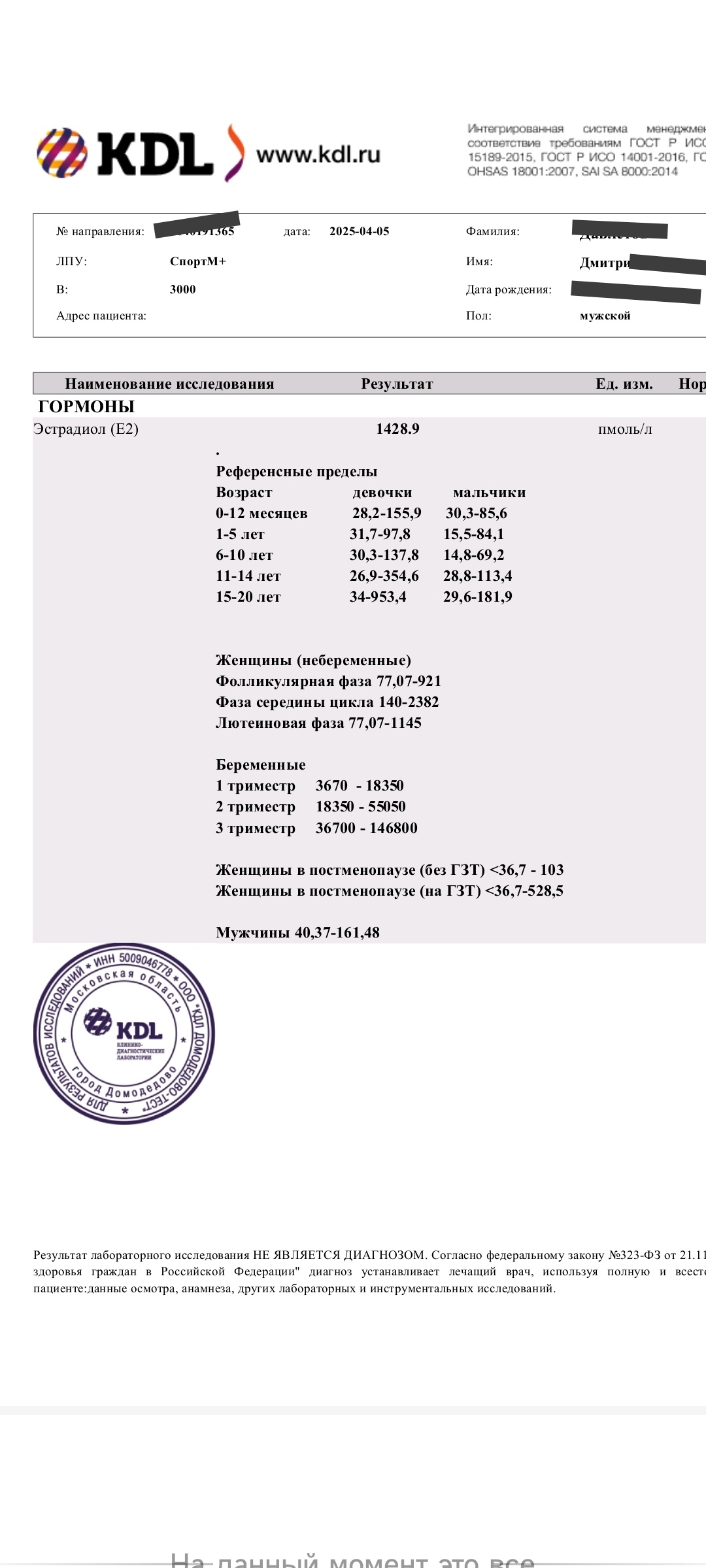 Анализы АШ DimoEstro