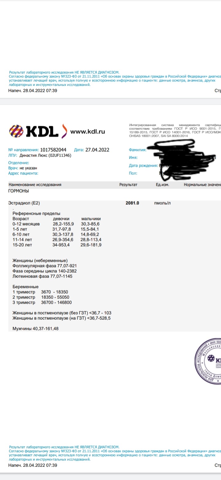 Эстрадиол, как у беременных!))