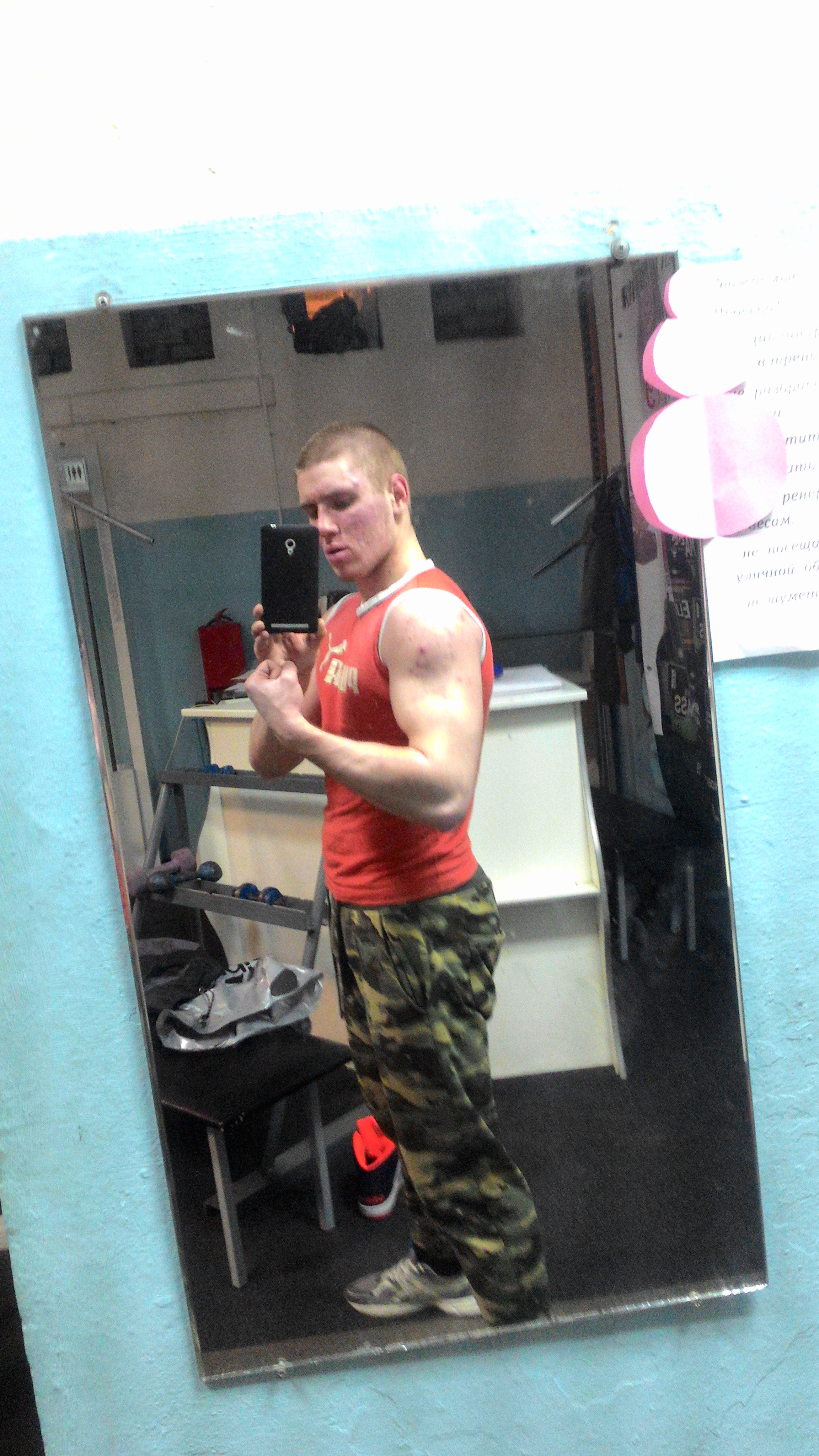Всем привет,как вы поняли по нику меня зовут Андрей. Напишу немного о себе.Мне 21 год.В силовой спорт я пришёл 2 года назад после просмотров видео с плюшевой бородой и т.д.До этого занимался паркуром 4 года и за это время было два перелома,и решил перестать.Первый год занимался херней,были мысли забросить после полугода занятий и выглядит так