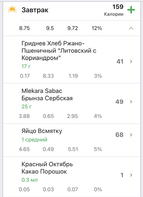Завтрак 159 калорий