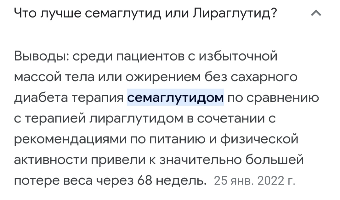 Цена конечно кусачая за этот семаглутид.((( Блин старею ничего запомнить не могу. ХД У меня пациентка к эндопротезированию готовилась на этой саксенде -25кг за 2 с лишним месяца.
