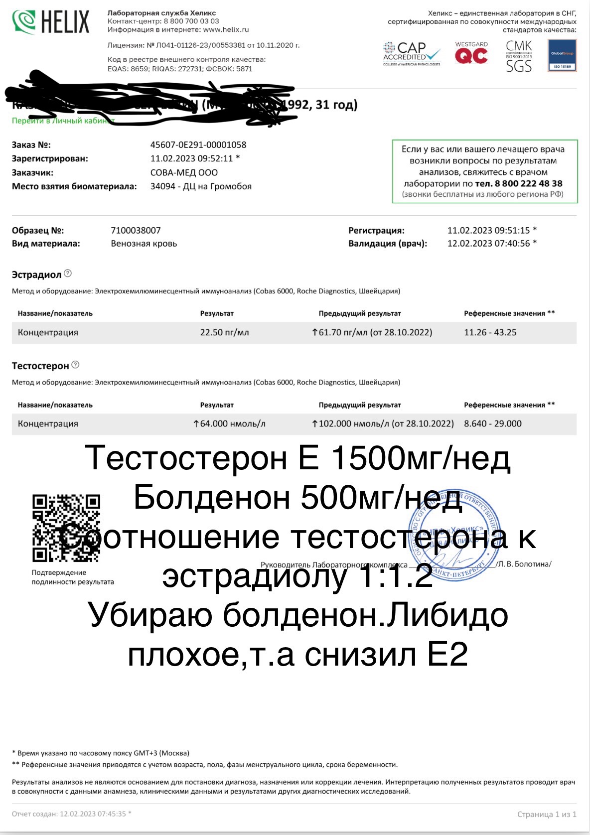 Лаба Хеликс,да лаба на причем.Я сам себя плохо начал чувствовать за неделю до сдачи анализов.Да,ставлю в один светофор.Но смысл тогда разделять,если сам же советуешь сначала в один баян,потом отдельно суст.Здесь уже какие то танцы с бубном и конспирология.Я же говорю у меня ровно год назад такая же ситуация была один в один.Только как отменил болд,тест за неделю вырос.Сейсас пришлю годовалые анализы,там такая же картина,только в обратную