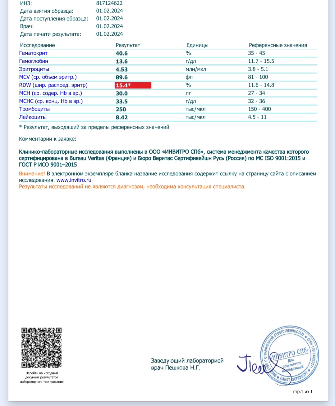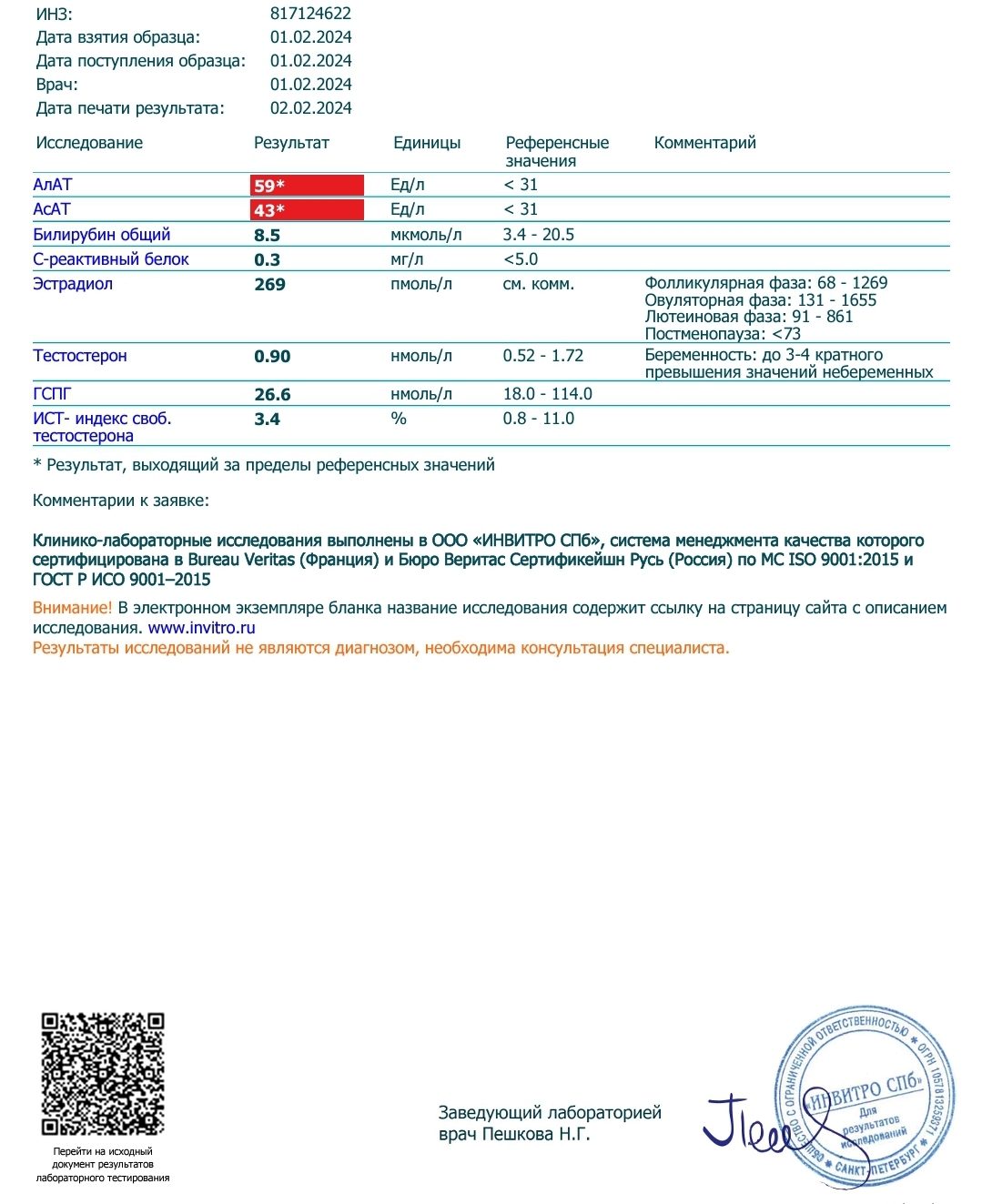 И вторая часть анализов