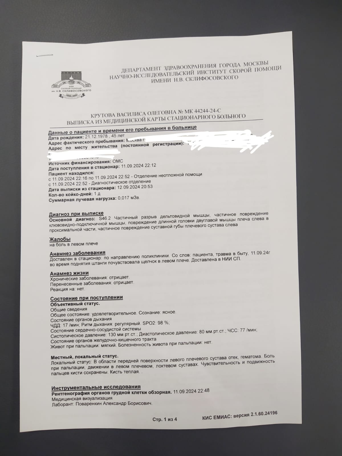 1 - забрать диск с результатами МРТ из Склифа. При выписке они его не выдают, в мед карте данных тоже нет и надо идти в коммерческий отдел и платно забирать.