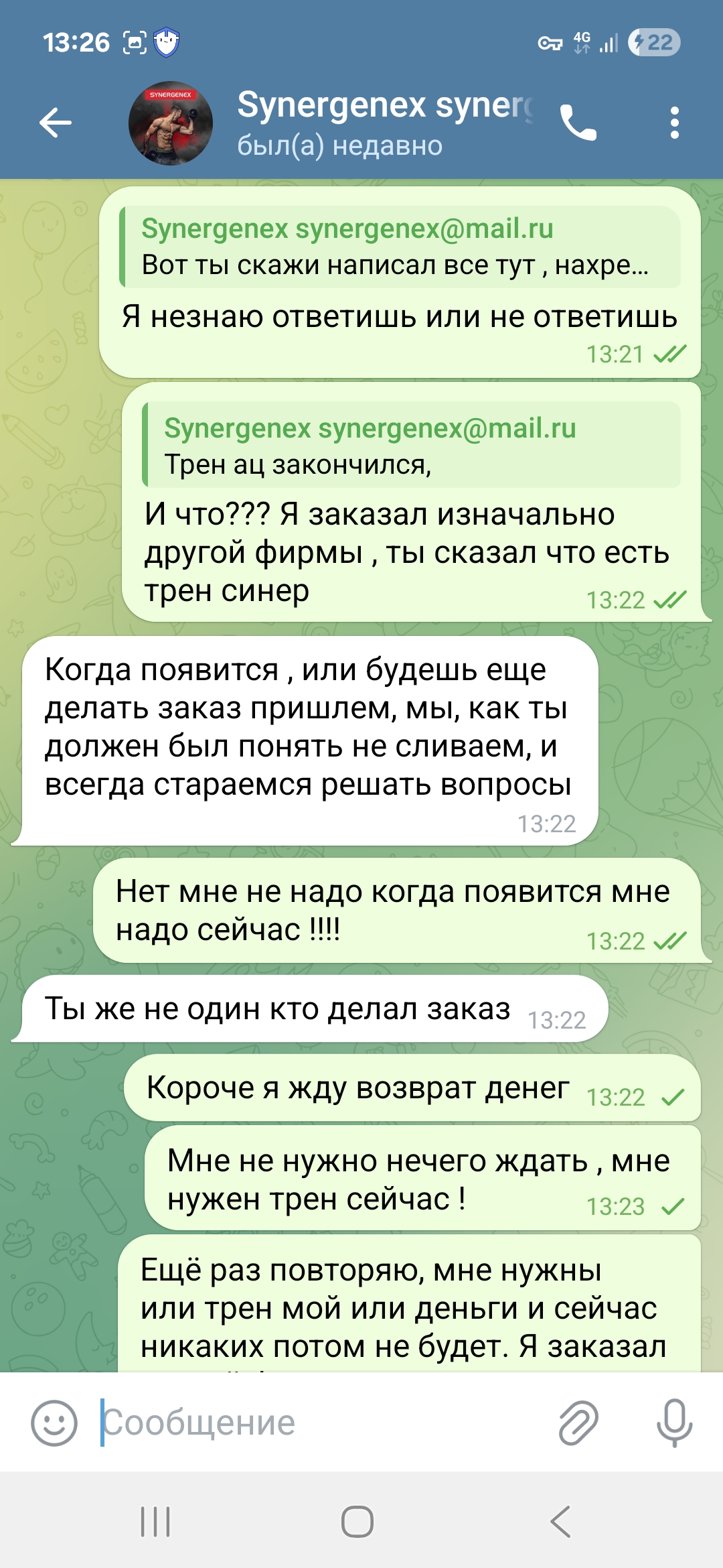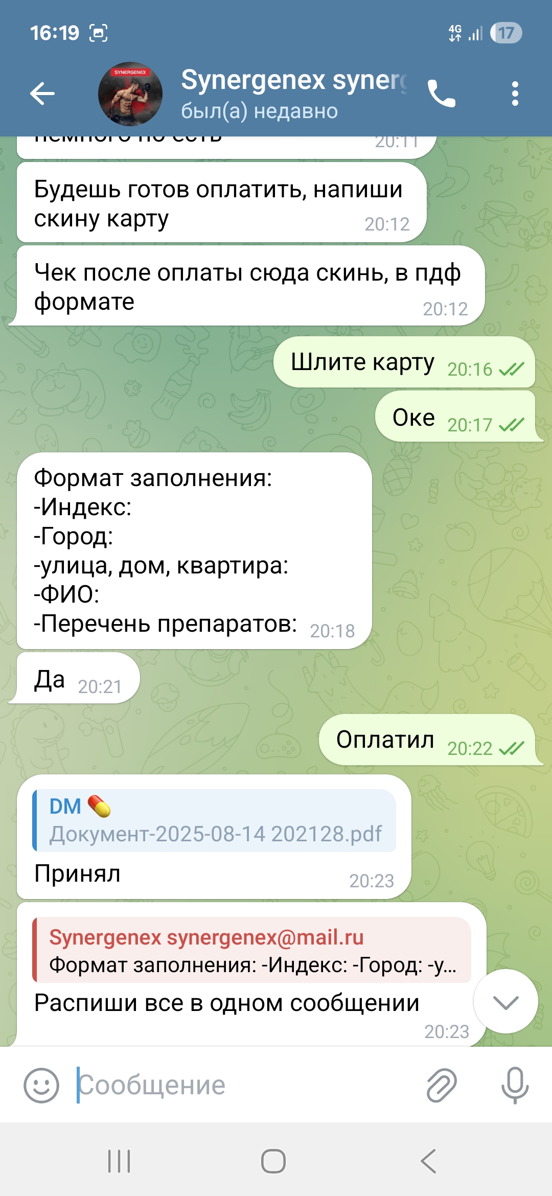 14.08.25 я делаю заказ у данного продавца ТГ @synergenexmailru и их чат SYNERGENEX чат люди позиционируют себя как официальный представитель Synergenex.