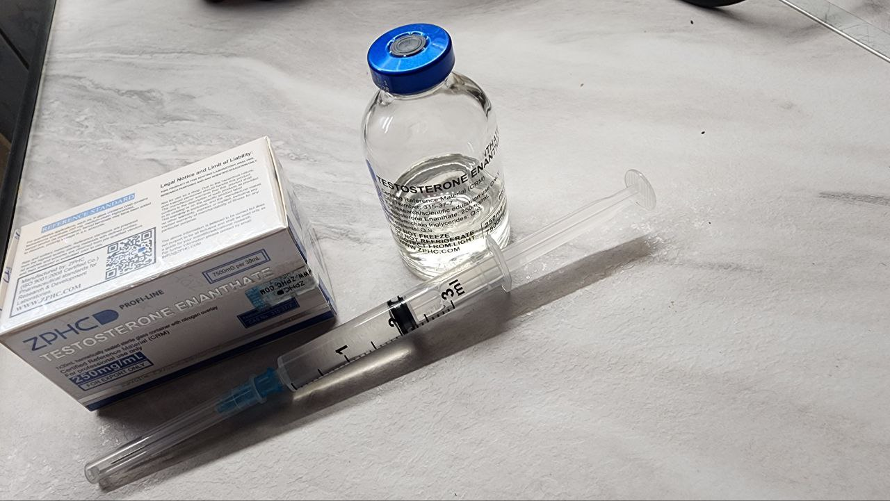 Инъекции раз в неделю по 250мг. Результат отличный, учитывая что собственный тест был всего 12 нмоль.