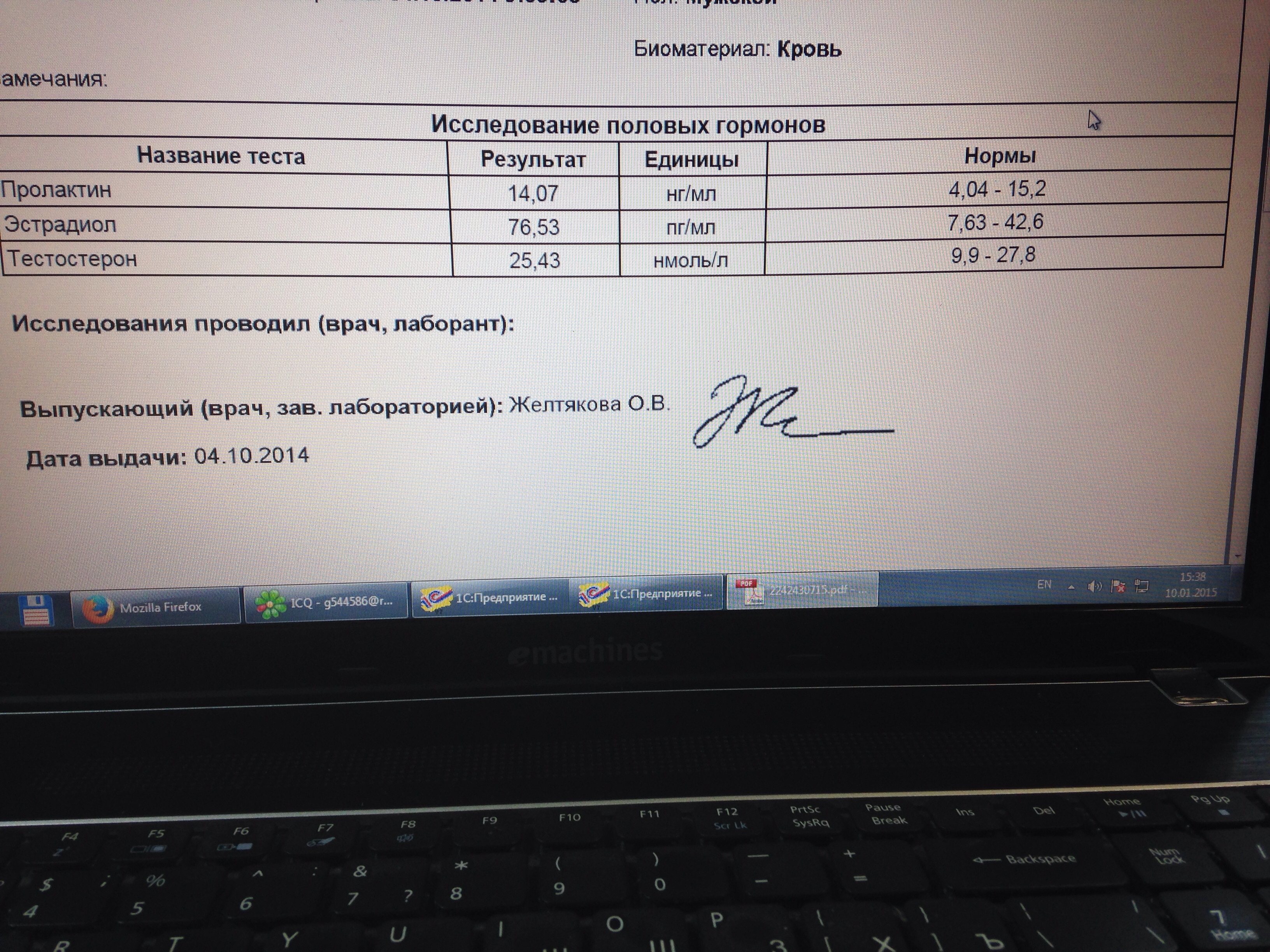 У тебя есть анализы от деки заказаной у френка? у тебя пролактин зашкаливает?