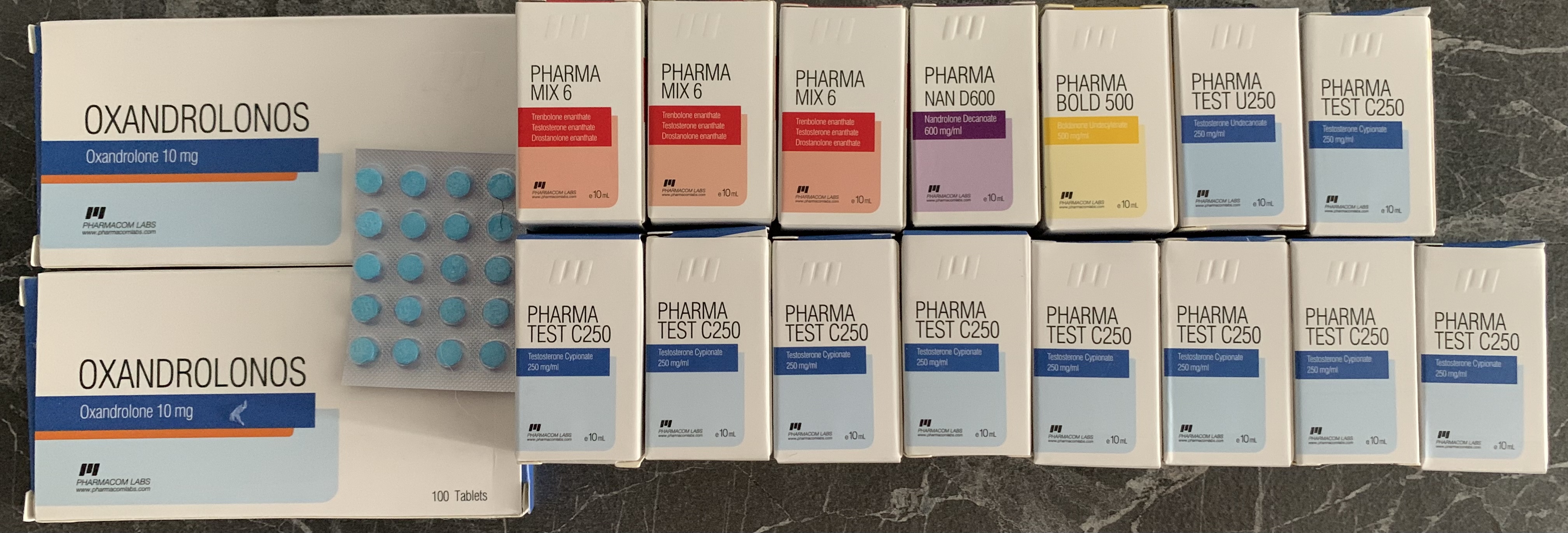 В наш ассортимент входят всем знакомые препараты: тестостероны, нандролоны, болденоны, тренболоны, дианабол, станозолол, туринабол, оксандролон, оксиметолон. Также, Фармаком Лабс производит самую широкую на рынке ААС линейку послекурсовой терапии: провирон, анастразол, финастерид, роаккутан, летрозол, фарестон, кломид, каберголин, экземистан.