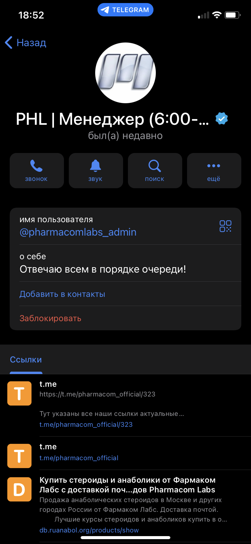 Официальный ТГ канал Pharmacom Labs