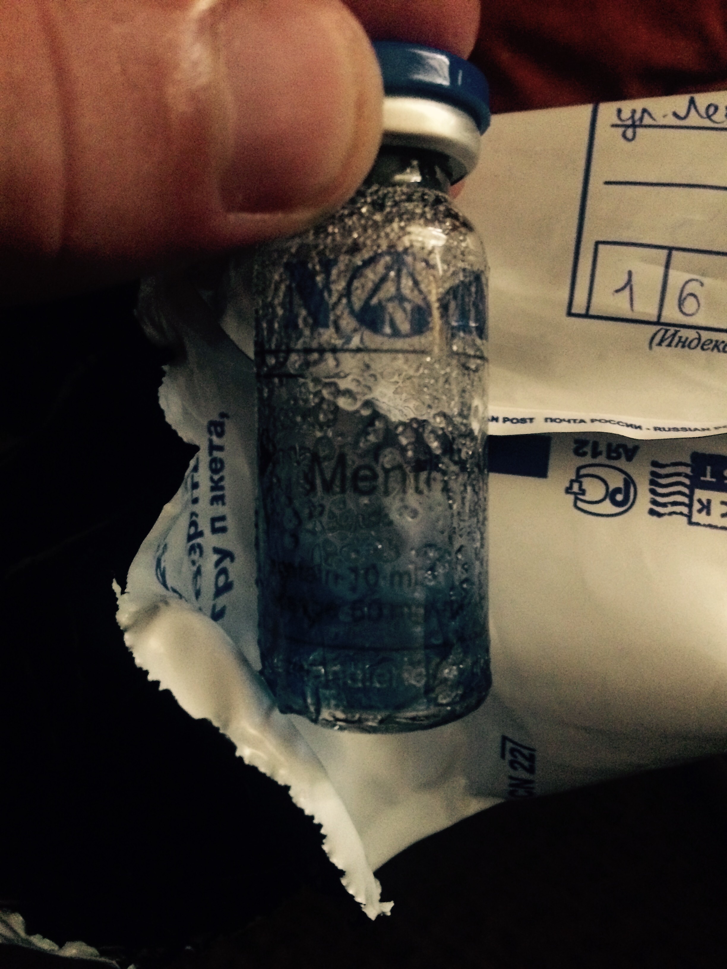 Пришла вторая посылка, пришло все, попик и метан весь в кристаллах, Болденон без этикетки почему то..:( и разбилась ампула метана весь в масле со специфическим запахом :D (( видео есть при необходимости )) - добавите к след заказу