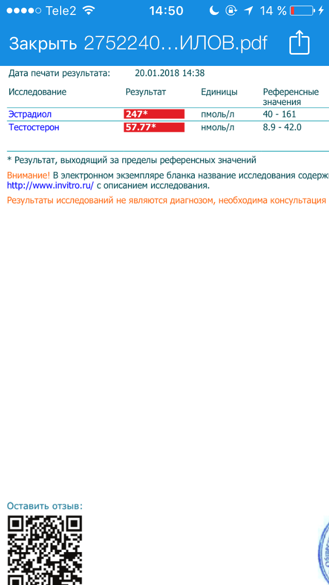 Вот результаты ребят ставил проп сначала через день пос 4 дня каждый день по кубу после последнего инжекта прошёл больше 24 часа до анализов