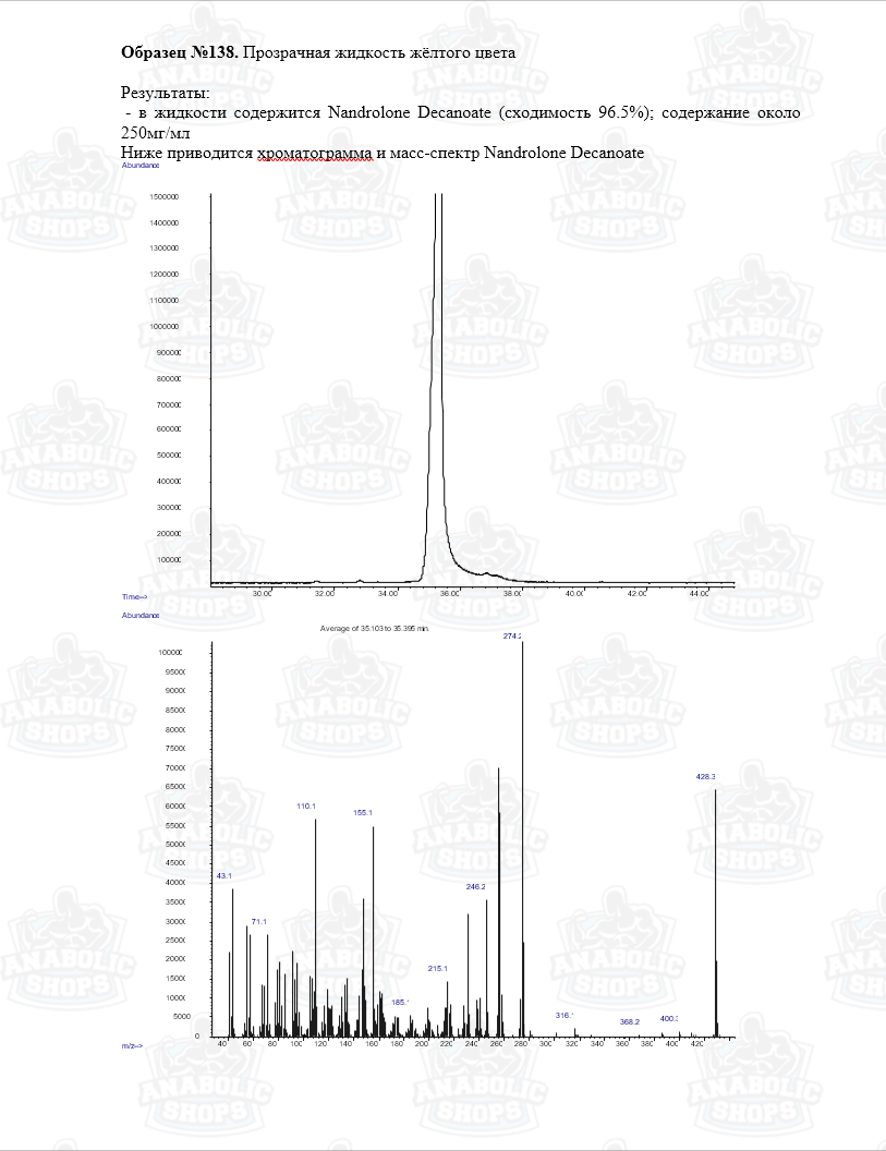 • Хроматография: образец содержит НАНДРОЛОН ДЕКАНОАТ;