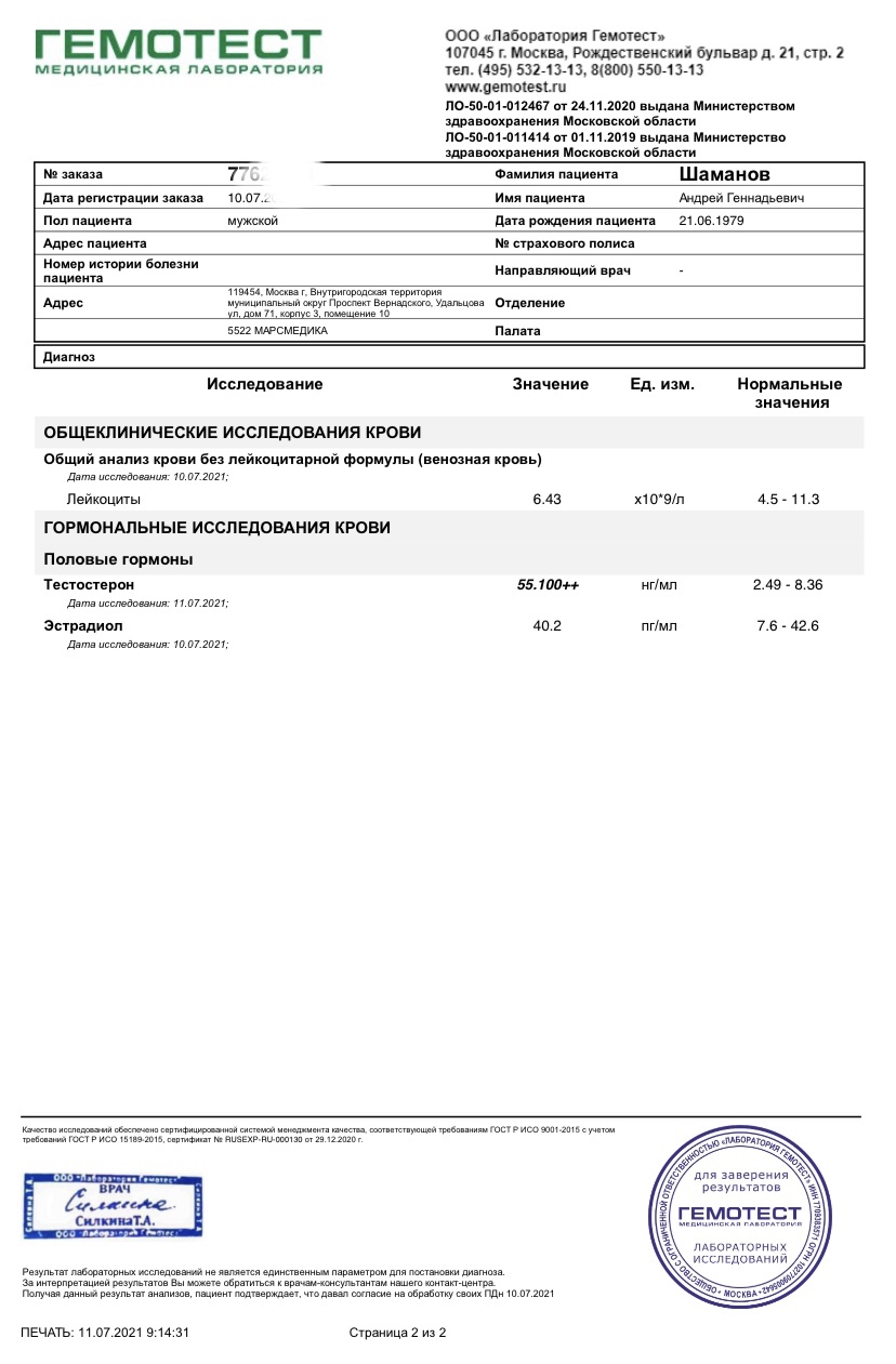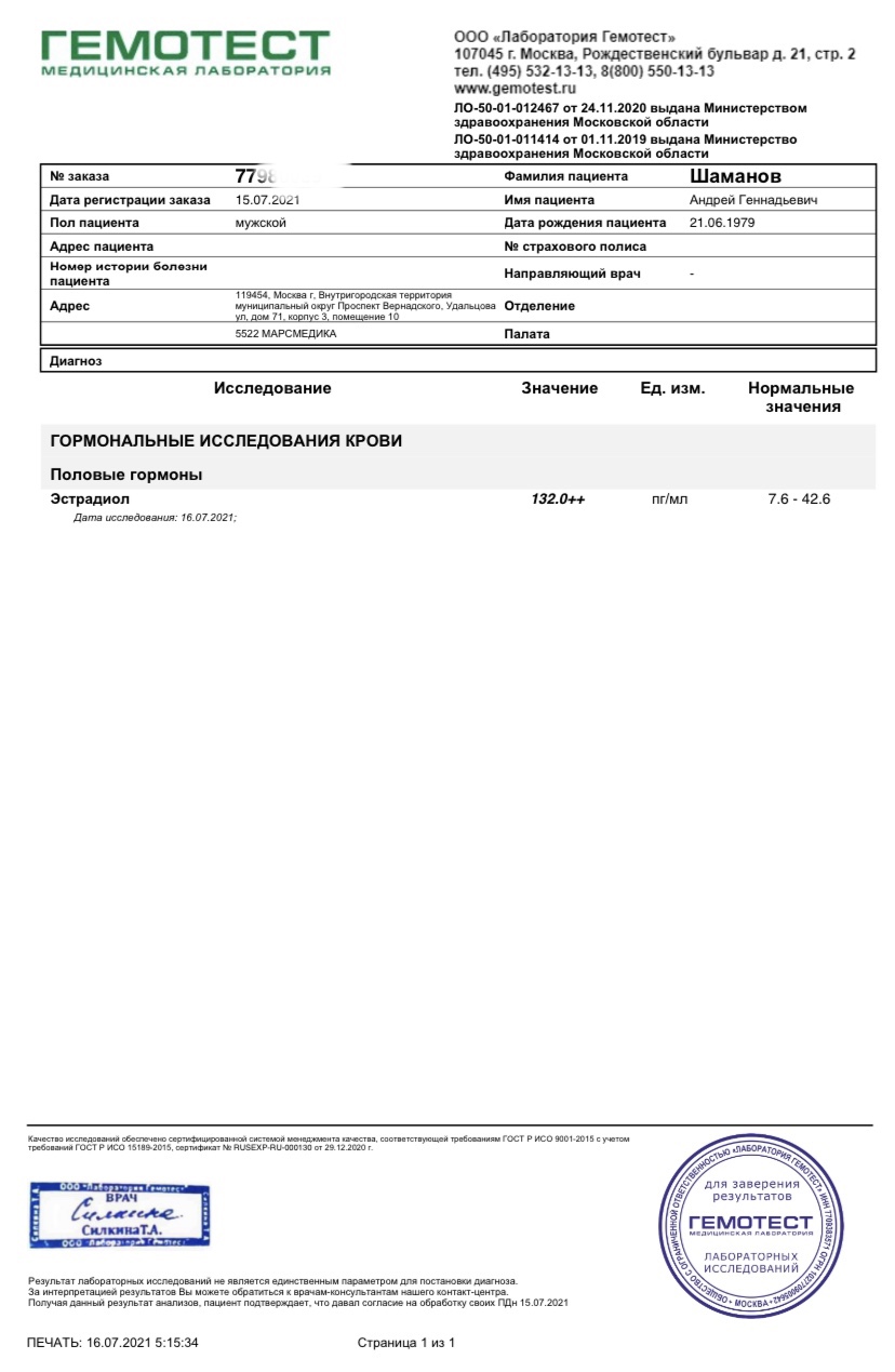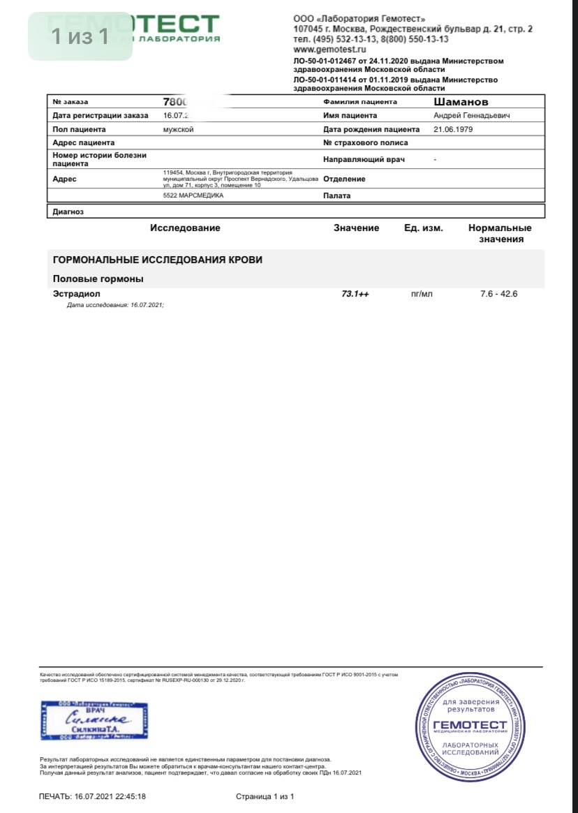 По мануалу сдачи ацетат 6-7 часов, самый пик. 12 часов я раньше сдавал, тоже заметное превышение по эстрадиолу (имею в виду не этот микс, а просто ацетат). Спустя сутки не встречал раньше анализов, поэтому не могу судить. Понятно, что тебе есть с чем сравнить по своим частым сдачам, но всё же. Вдруг это новый ультракороткий ацетат, за сутки полностью выветрился)