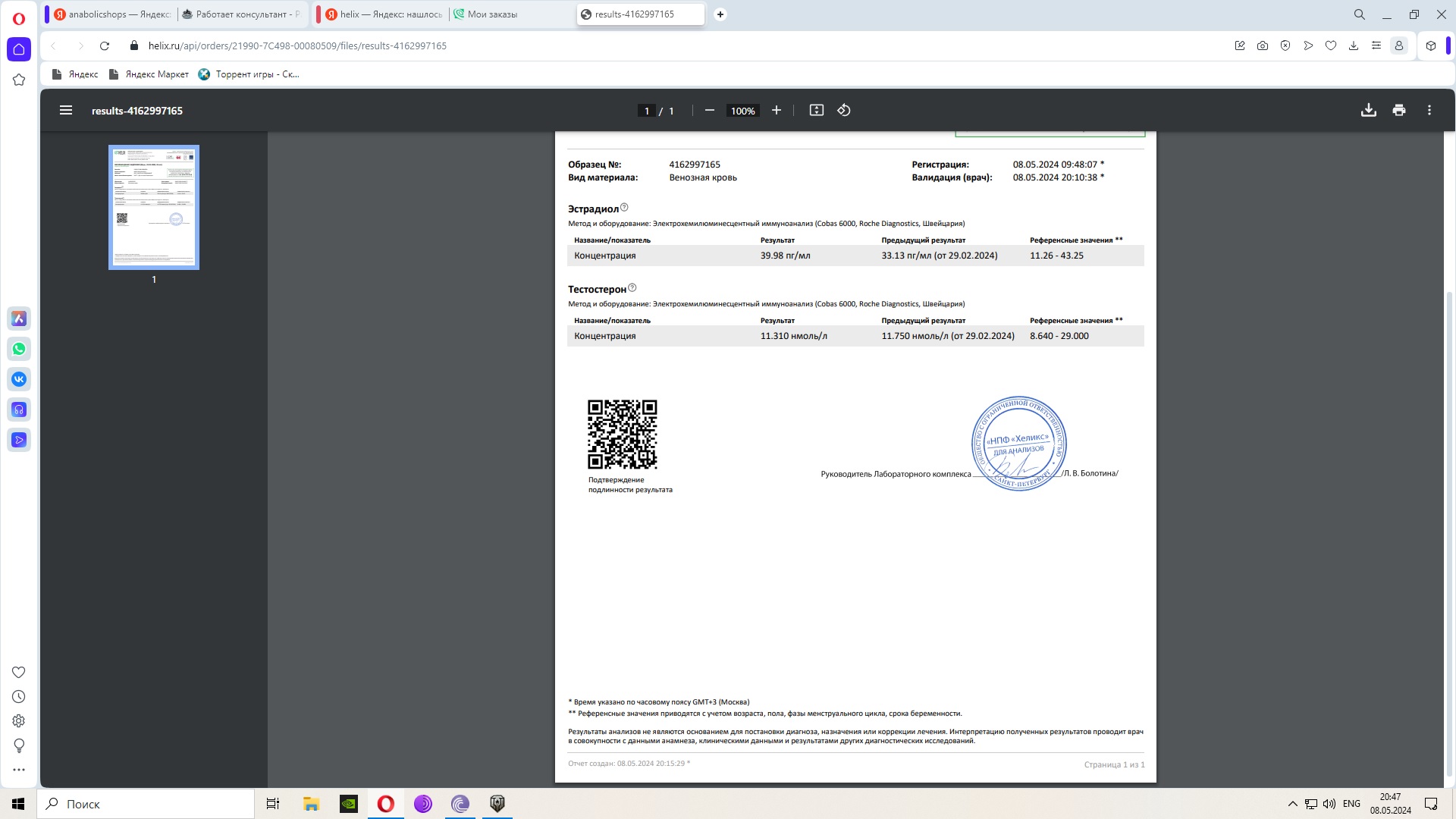 Работает консультант Разбор анализов гормонов, помощь специалиста