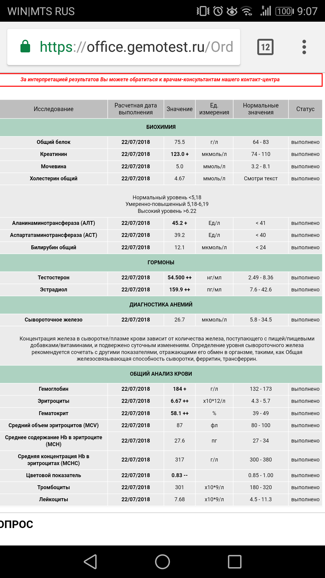 Работает консультант Разбор анализов гормонов, помощь специалиста