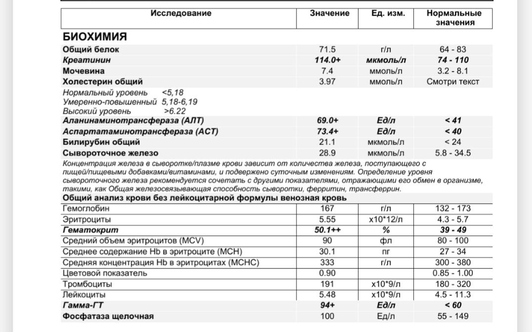 Ферменты такие потому что сдал не по феншую, тренировка была. Всегда после неё повышены они.