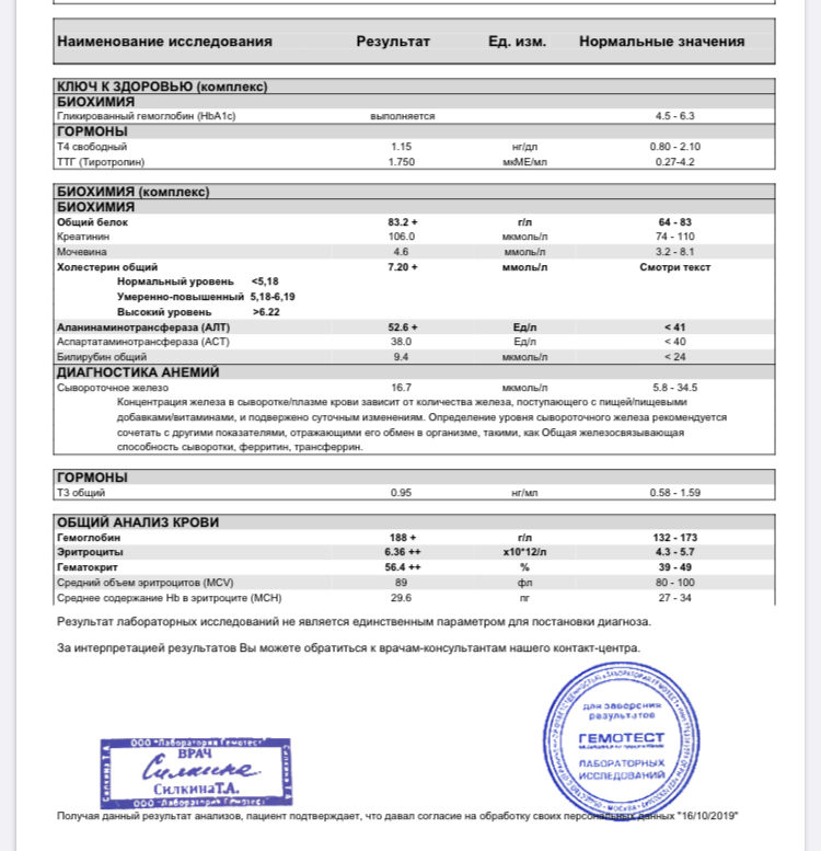 Правда я анализы сдал с косяком(тренировка была)