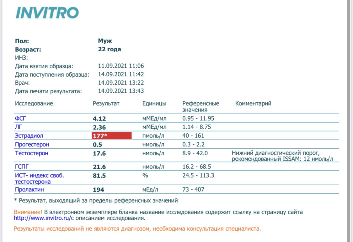 Длинно: 4 года без экзогенных гормонов. С курса выходил по-нормальному, с контролем анализов через 3 месяца и через 6. Месяца 3 тому назад заметил что чешется сосок и под ним есть уплотнение. "Ну, всякое бывает"- подумал я и расчехлил протухший ещё два года тому назад анастрозол. За неделю-две сбил уплотнение. Уехал в командировку. Через три недели опять чешется. Подумал: "приеду сдам анализы". И сдал. Вот сижу смотрю в них и недоумеваю. Подскажите, что за проблема может быть и что с ней делать? Анализы в приложении. Анастру до анализов, естественно, не кушал Заранее спасибо за ответы.