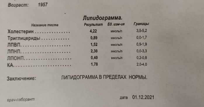 Rednarok, привет. Заставил я всё-таки отца начать статины, до этого холестерин был 7-8, липидогамму раньше не сдавал. Пропил 10 мг 30 дней. Посмотри пожалуйста анализы, перейти на 5 и пересдаться?