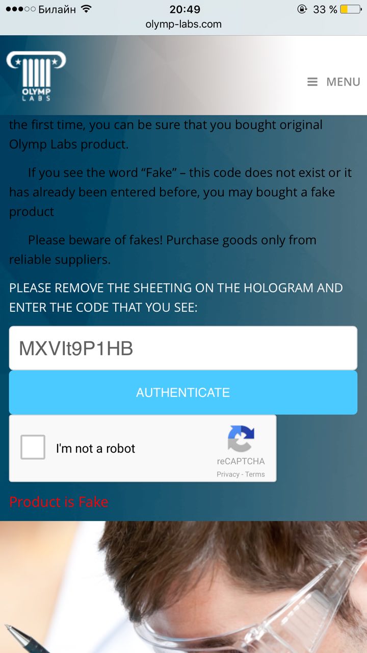 Вот никогда не понимал людей, которые так замарачиваются. Коды какие-то пробивают. Что за паранойя. Цены на продукцию олимп наверное самые дешовые, кто будет их подделывать? Себе в убыток...