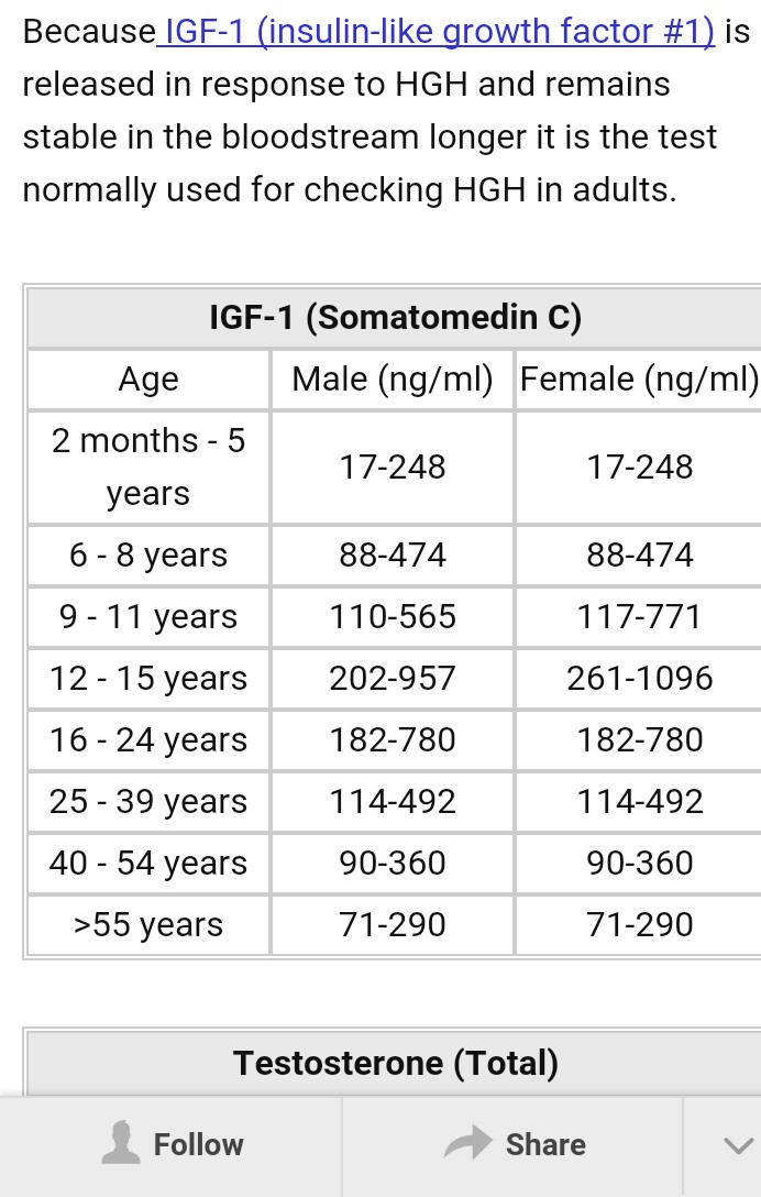 Тут данные разнятся. В некоторых исследованиях и статьях я встречал что у детей и подростков Стг выбросы до 80-120нг/мл. Где то пишут что до 10 нг/мл. По ифр-1 тотде самое, где то потолок 1200 нг/мл верхний рефернт, где то 800 нг/мл в 15 лет.