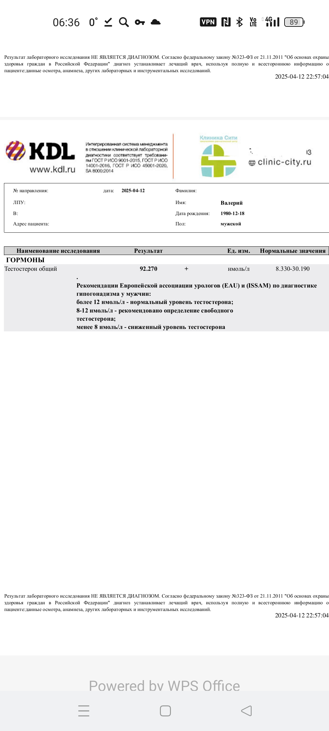 Но мы привыкли видеть результат по тестостерону 120+ нмоль/л. А тут этого нет.
