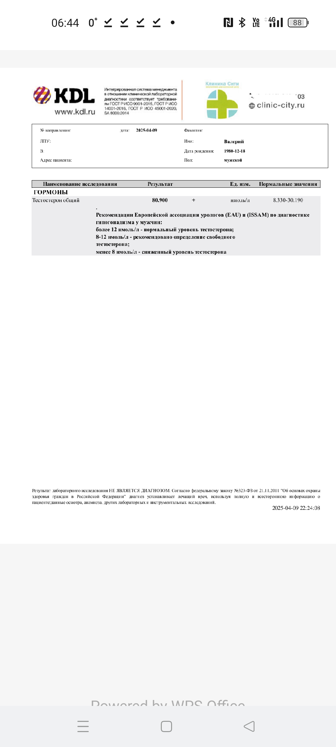 Сначала сдал через 48 часов для проверки, результат 81н.моль