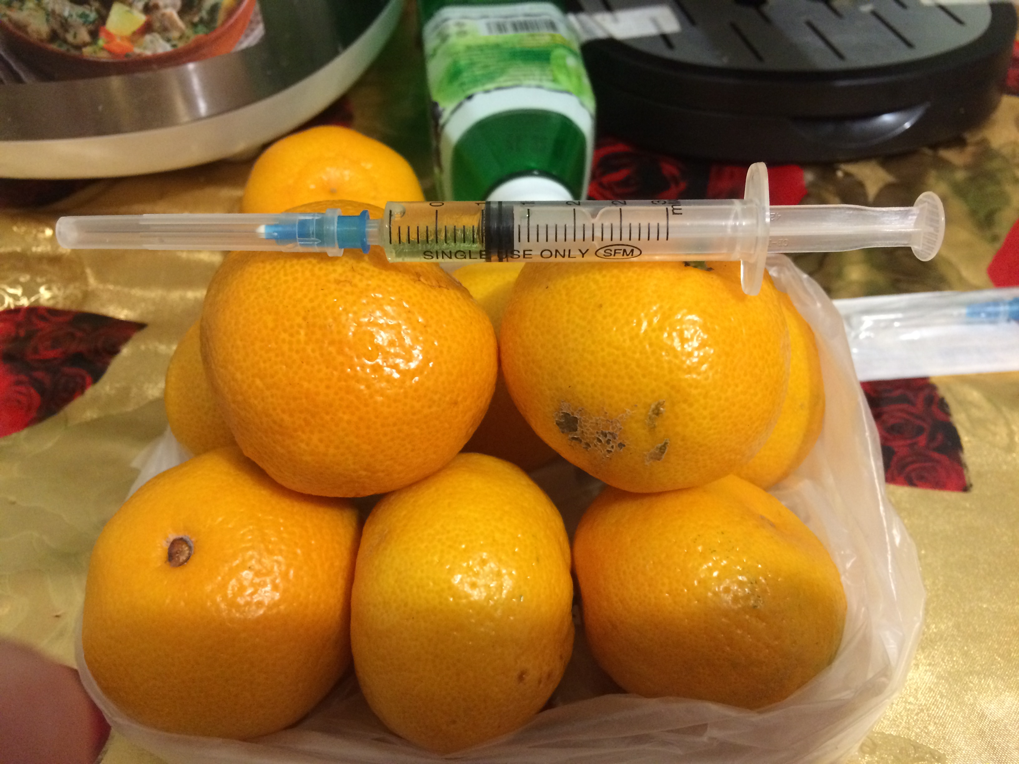 Вона что, заправляет апельсины, а потом жрет их )))))