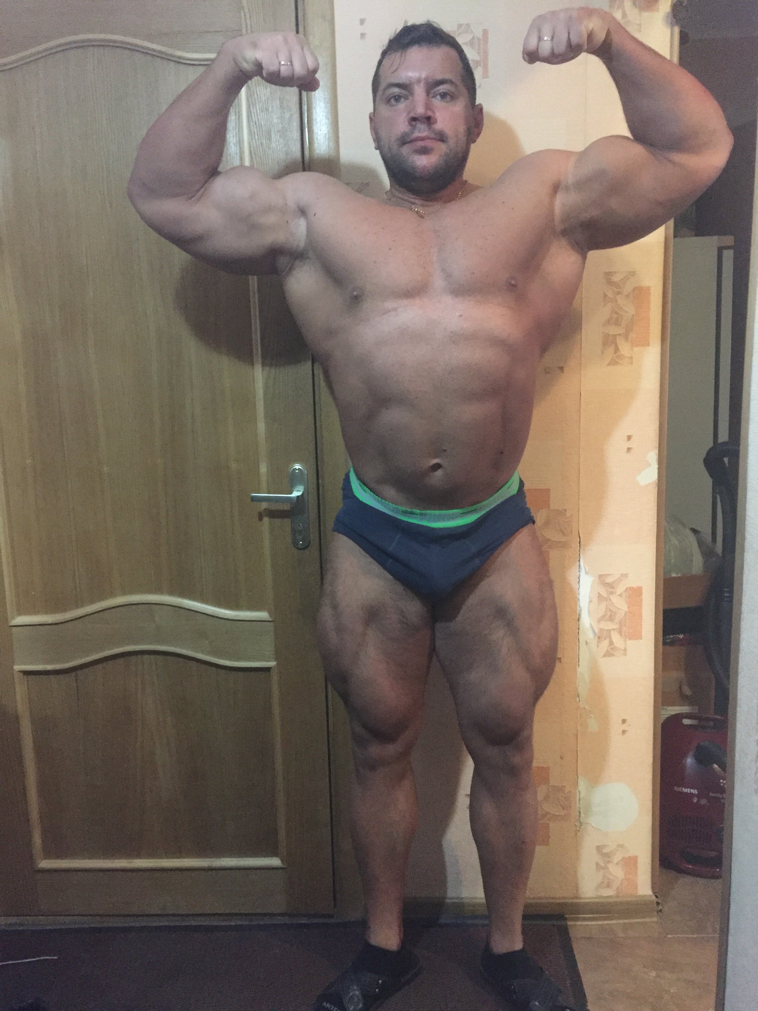 Доброго времени! Вот и проверил я три схемы коротких препов! Остановлюсь на одной из них! И продолжу уплотняться наверно ещё месяц!) а вот и фото ))) поза может не очень выбрана но видно что лицо хорошо ушло и на треньках очень хорошо стала видна плотность и венозность ! Вам судить! Через некоторое время выложу ещё актуальное фото! Потеря со 124 до 118