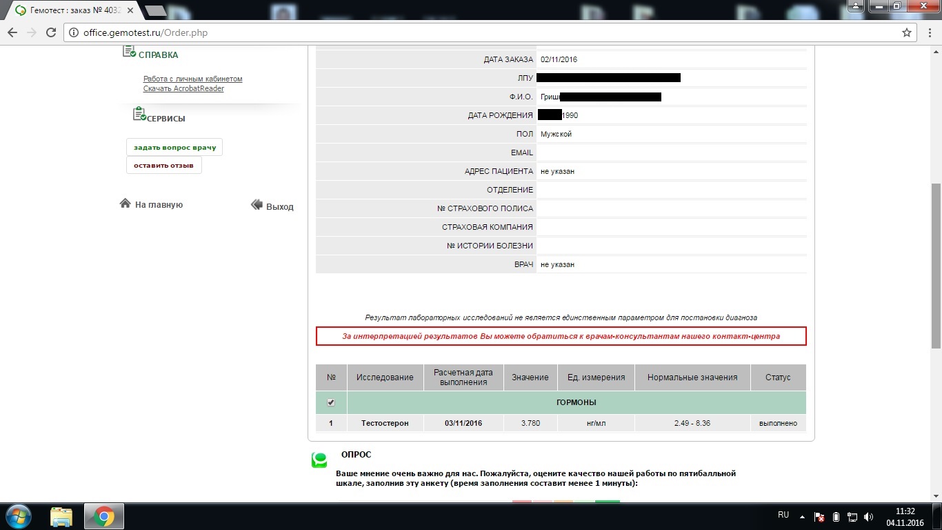 Сегодня был сдан анализ в гемотесте.