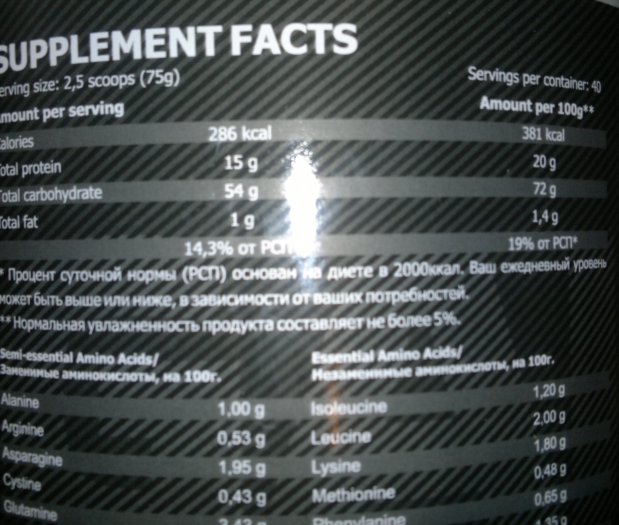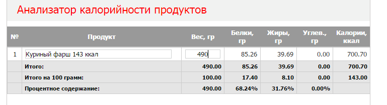 Да протеин не могу посчитать там не написано углей сколько и жиров тоже ..Только каллорийность ..2 дозы в день по 400мл