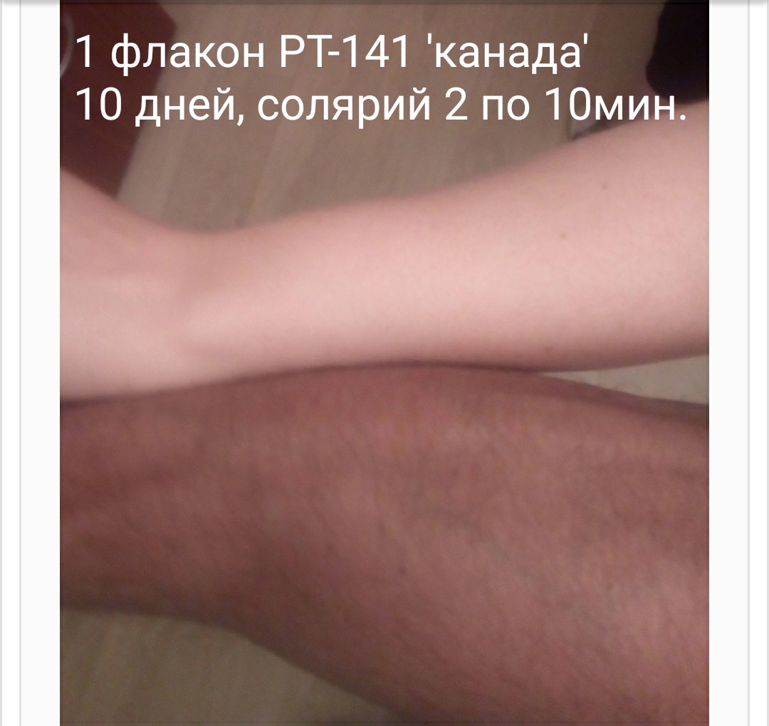 А вот другой опыт, pt-141. Цвет моей кожи 'до' был даже светлее, чем у жены! Про лицо я вообще молчу, меня даже мама не сразу признала, когда увидела!