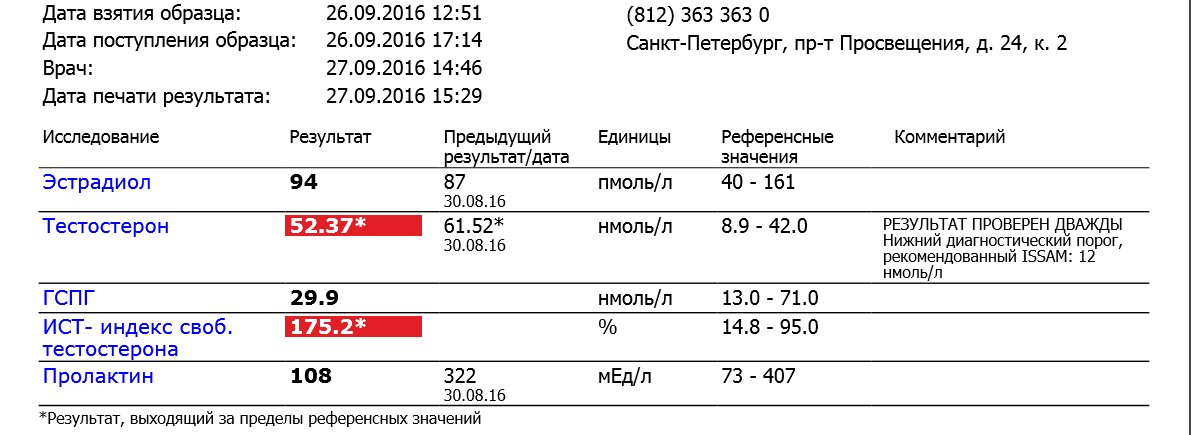 Немного поясню по графику. Красные линии-дни инъекций ТУ, каждого 25 числа каждого месяца. Первый инжект был сделан через 5 дней после последнего укола энантата (шел фоном раз в 5 дней по 250 мг), поэтому результат за пределами рефов (хвост энантата), еще и анализ был сделан на следующий день после инъекции ТУ. Далее анализы были 06.09 и 14.09. Позже я понял, что замерять более информативно через 5 дней после инжекта и за 5 дней до следующего инжекта (остаток теста) и посередине еще контрольный анализ для красоты). Итого раз в 10 дней. Далее анализы шли именно в этом порядке.