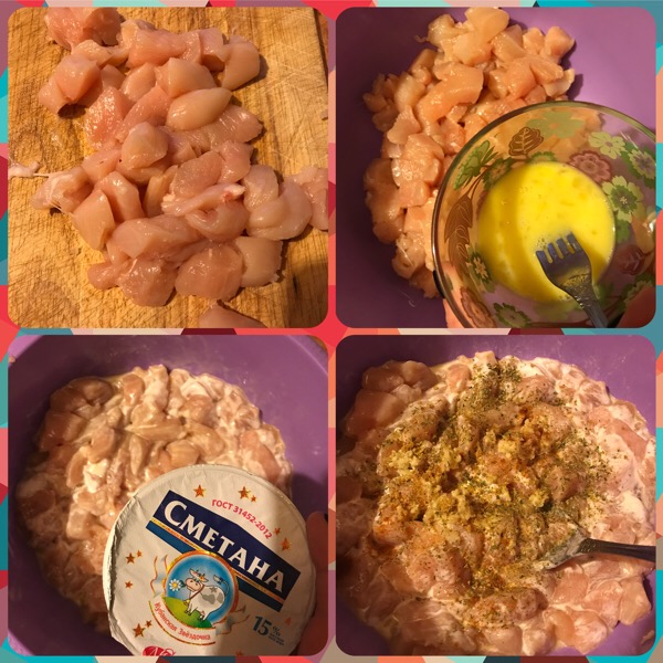 Сметана есть, положу ее. Я сейчас замешаю, пойду поработаю и вечером жарить, норм так?