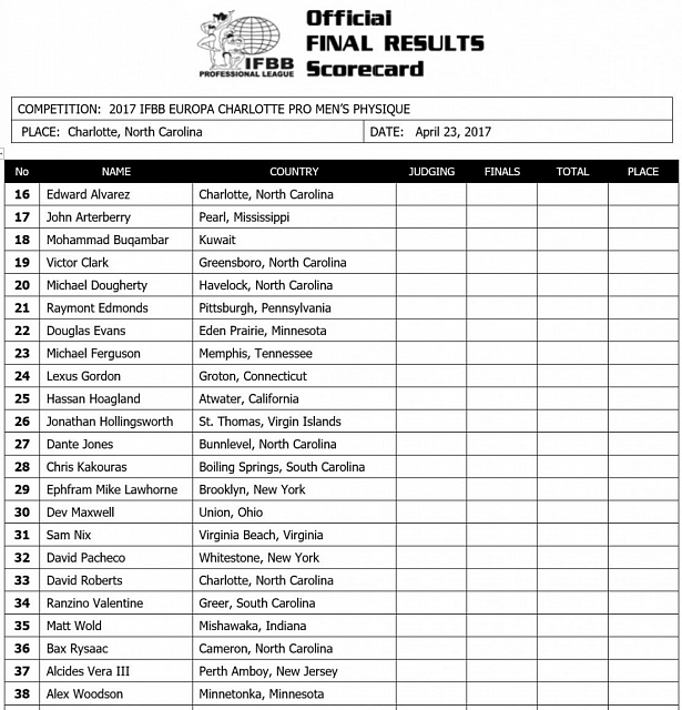 IFBB Europa Charlotte Pro 2017