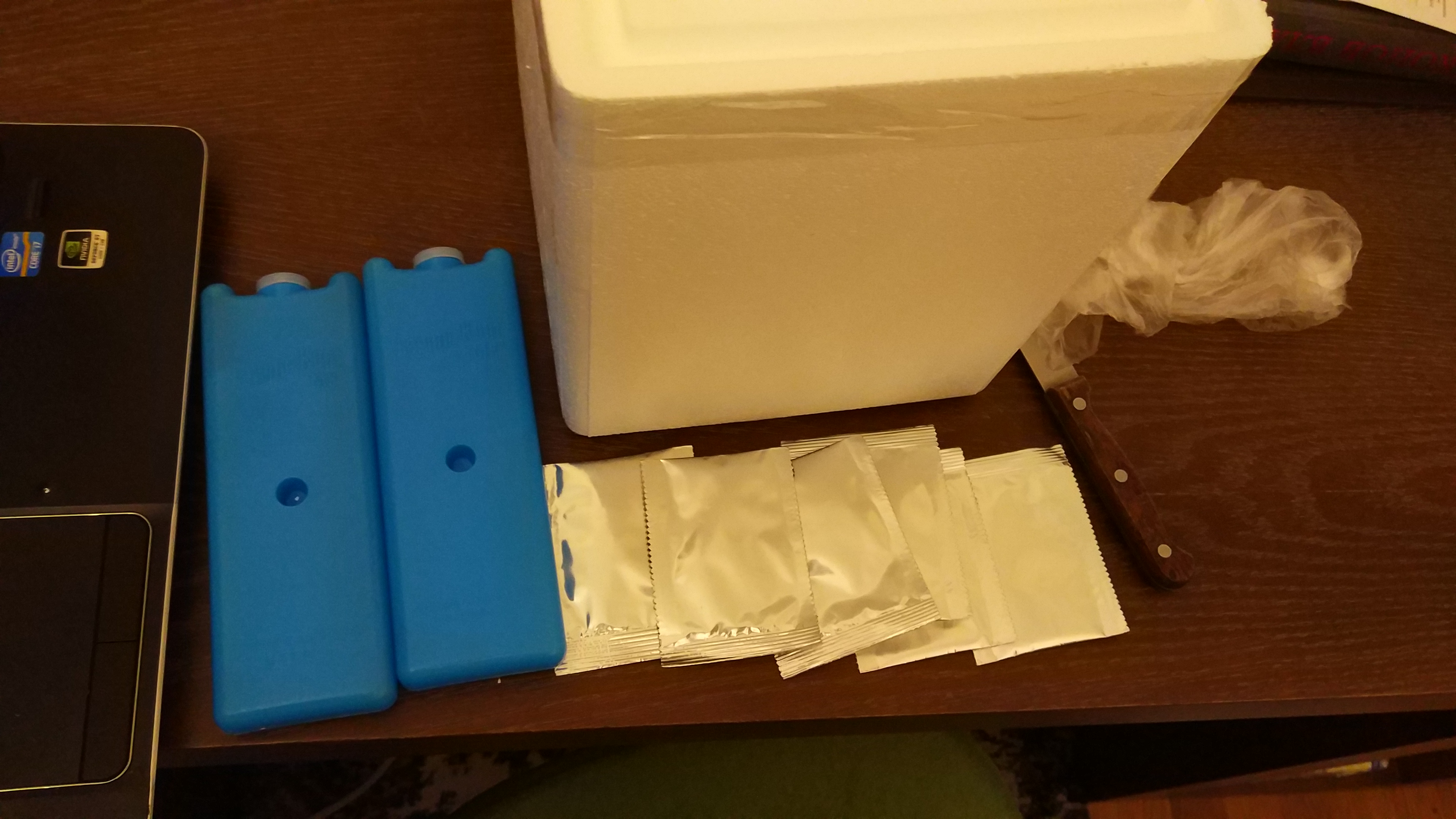 Пакеты дошли, но хлад элементы уже были теплые, сами пакеты я думаю были градусов 25 по температуре, не холоднее. Если бы последние два дня было бы 36 как и предыдущие 3 недели, они бы были горячие.(