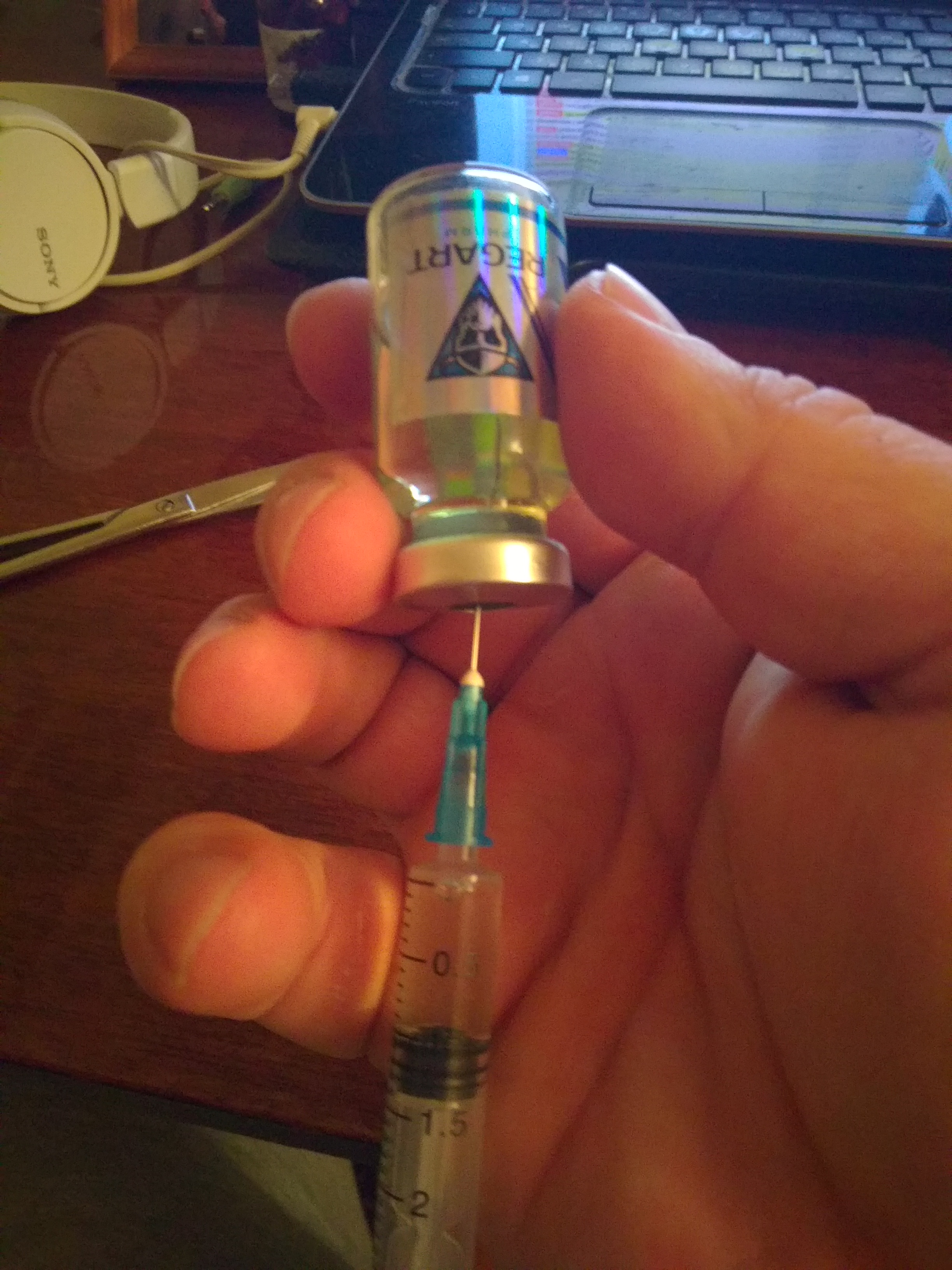 Скорость доставки великолепная, всё очень оперативно и быстро, трек код выдавался через 7 дней но как правило посылка уже будет в вашем отделении, так что с этим всё гуд! Вобще впервый раз держу виаллу подобного вида в руках до этого были реплики на БД, но от этого они разительно отличаются, первое это конечно же, что каждая виалла закатана в фирменную плёнку, при снятии клипсы с виаллы можно на резиновой крышечке увидеть логотип фирмы и надпись BD, так как я тупой кочка я содрал клипсу не по стрелочке указанной на железке а с другой стороны поэтому снялось так уёбищно, а так если вскрывать с нужной стороны то клипса отойдёт прямо с металическим "язычком" и будет вобще всё по красоте! Содержимое виаллы маслянистого цвета и однородной консистенции, посторонних предметов и кристалов ДВ не имеет. Легко набирается в шприц, при постановке инъекции болезненных ощущений не вызывает, спустя 4 часа после инъекции, инфильтрации и гиперремии в месте инъекции не обнаружено!