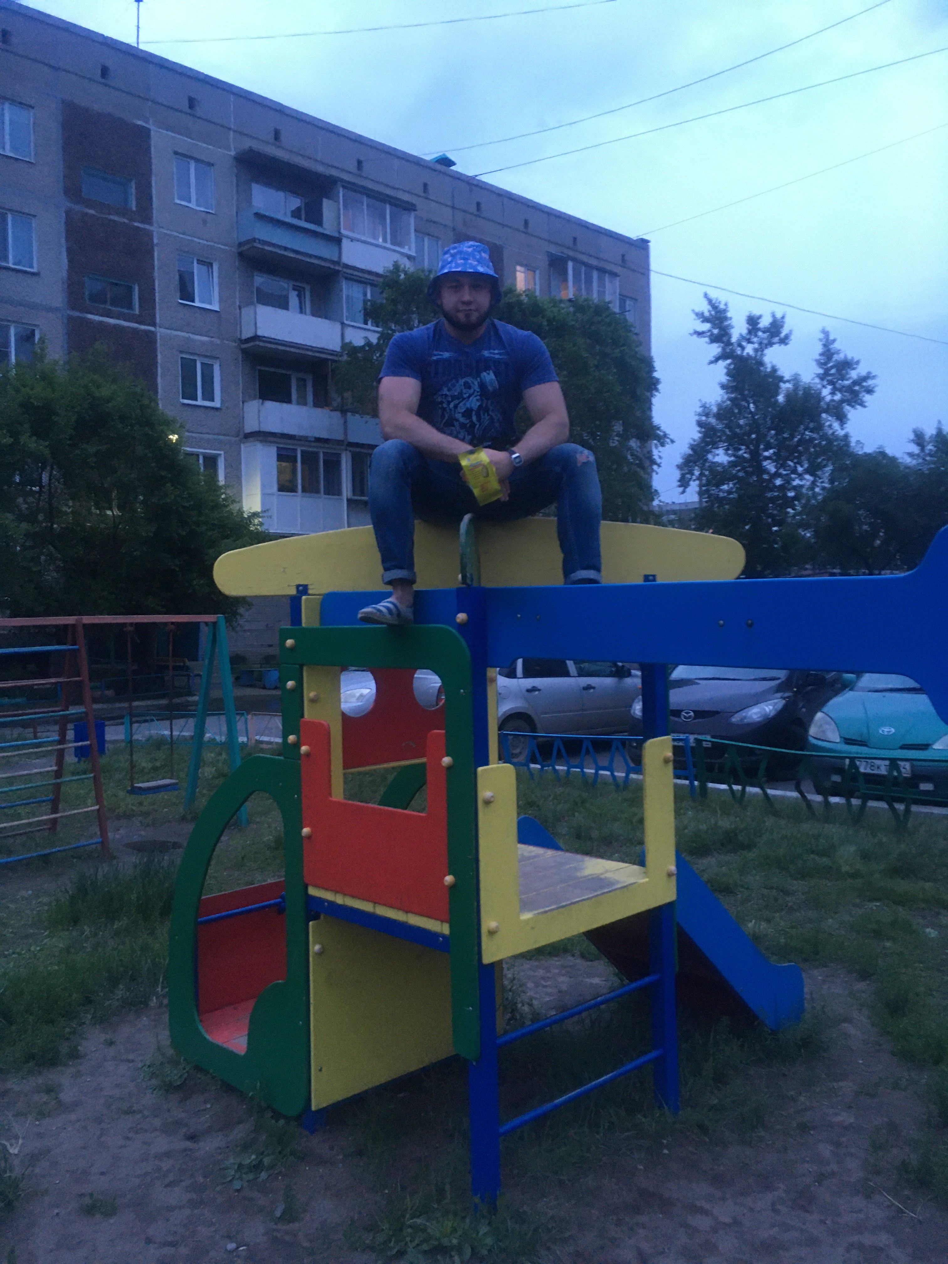 Не, просто он на детской площадке невесту ищет, сразу с детьми, чтоб избежать бессонных ночей и катаболизма!:Физрук: