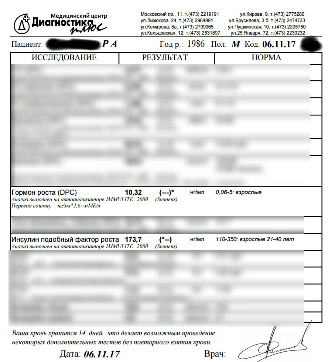 - Цель эксперимента : при одинаковом гормоне роста определить как он будет определяться на анализах у совершенно разных людей. Это как раз сможет убить все легенды о том, что влияет, или нет.