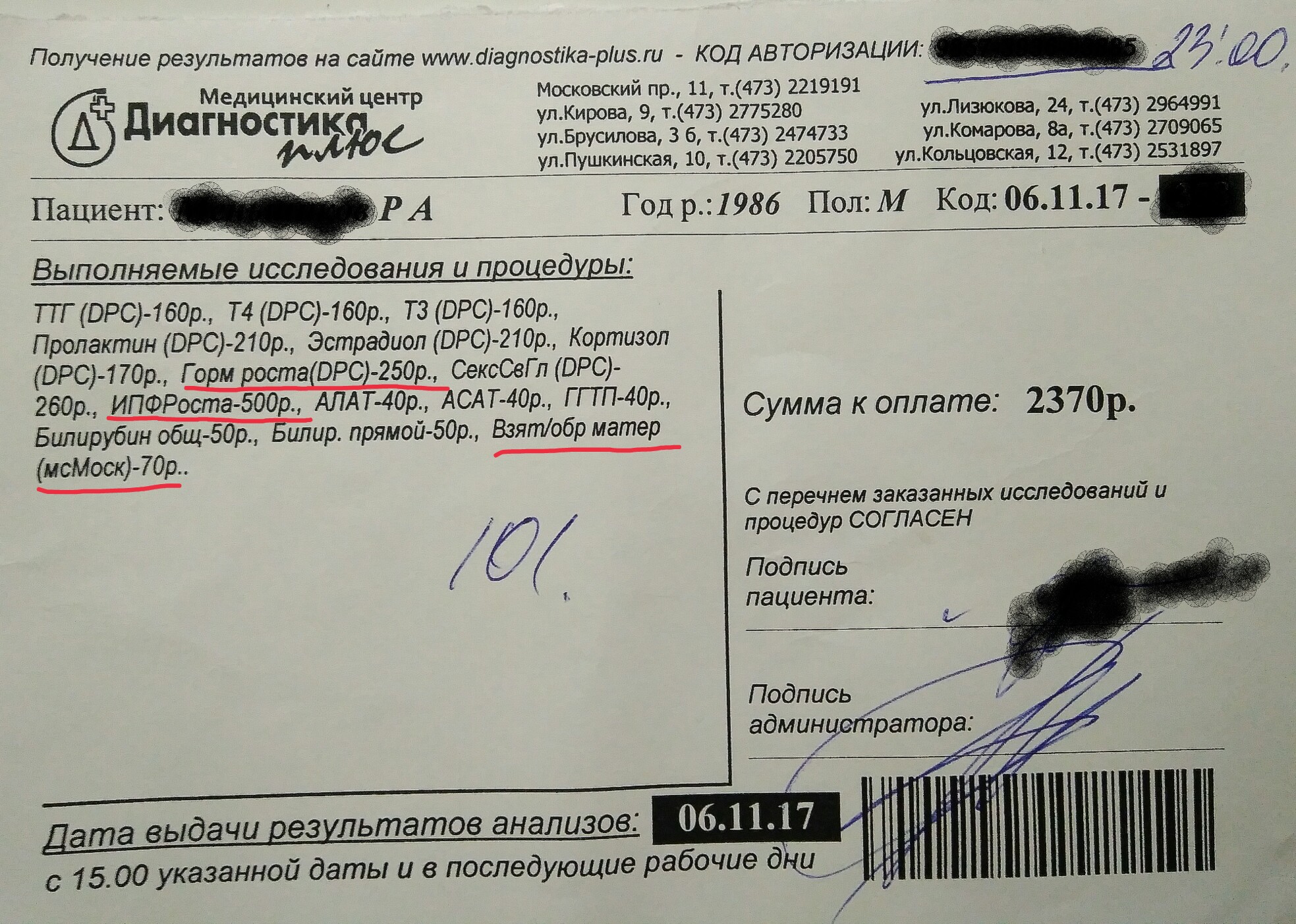 - Сдача трех анализов, первый флакон, 5 флакон и 10 флакон. Проставить их нужно в течении от 5 до 20 дней, уже решаете сами. Сдаем как всегда, 2.5-3 часа после инжекта, желательно с утра на голодных желудок. Анализы оплачиваем.