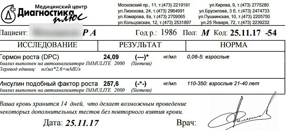 - Цель эксперимента : при одинаковом гормоне роста определить как он будет определяться на анализах у совершенно разных людей. Это как раз сможет убить все легенды о том, что влияет, или нет.