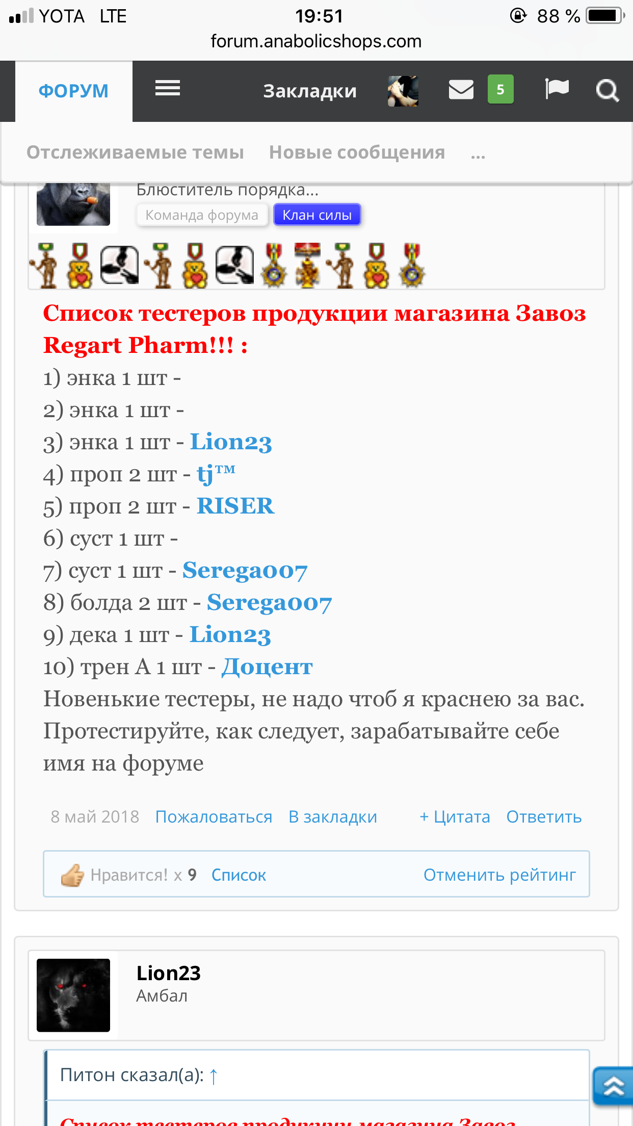 Lion23 mr.Champion Тестер нашей площадки