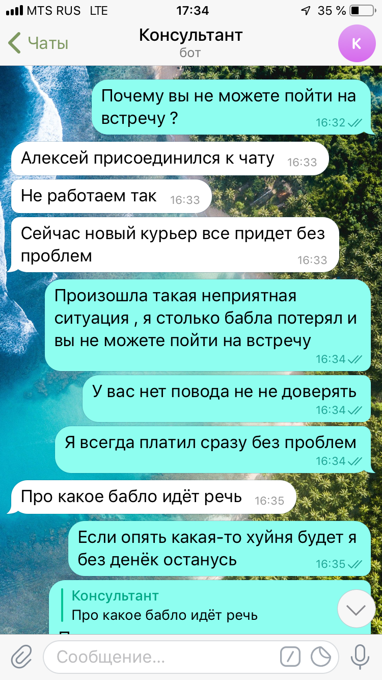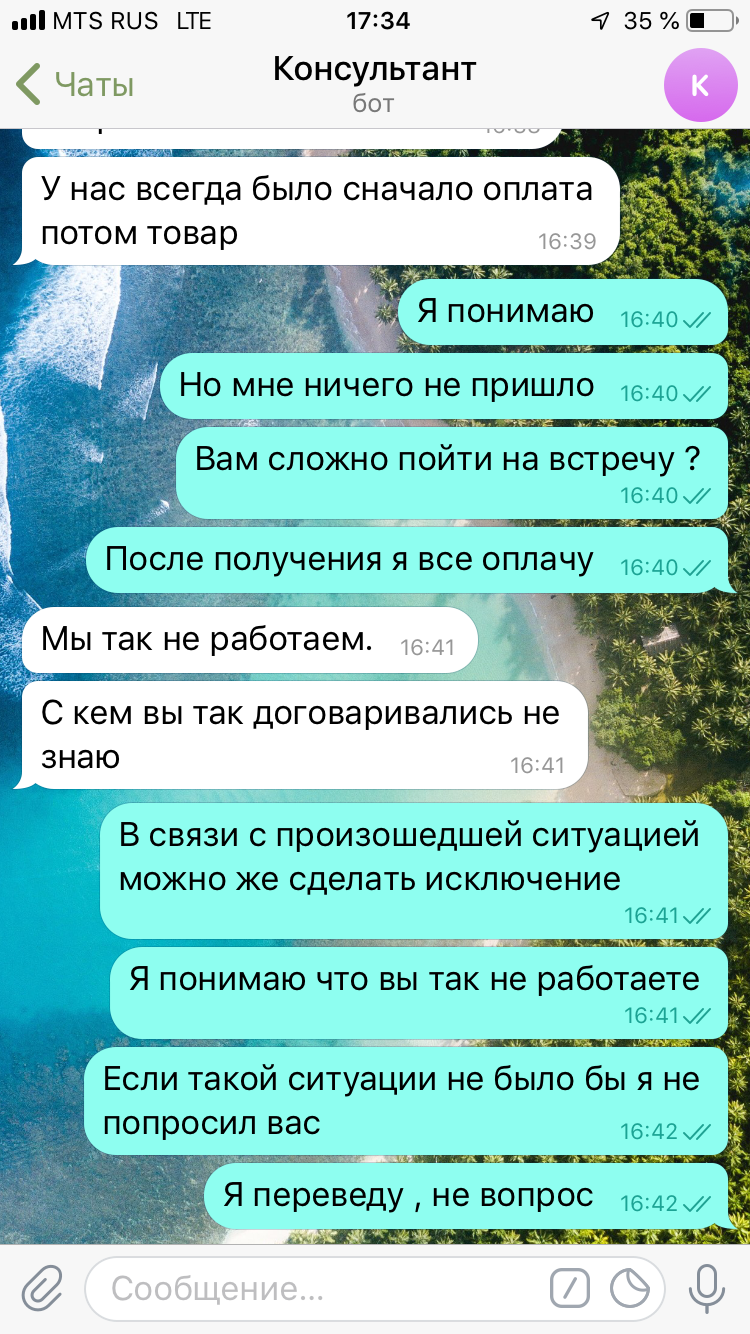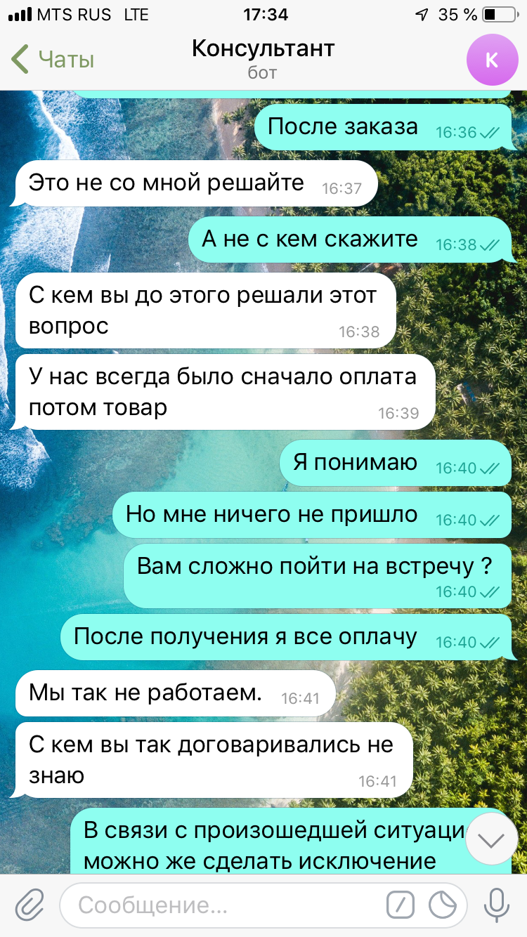 Я считаю , что доверие нарабатывать годами и потом потерять в один день ! Эта ситуация тому подтверждение . Я не знаю , сколько будет смельчаков , которые будут рисковать своими кровными теперь ! И ладно , если бы продавец вошёл в положение , но нет ... Ему все ровно такое дело . Одного кинем , ничего страшного , найдётся ещё 10-20 человек , которые оплатят . Я писал в телегу консультанту , пытался договориться с ним . Можно было найти компромисс . Например :выслать товар с оплатой после получения , но он говорит :»мы так неработаем, я этот вопрос не решаю. А с кем тогда можно решить вопрос , кто уполномочен решению таких ситуаций . Я же согласился даже оплатить ещё раз , но , к сожалению ни на какие компромиссы они не идут . И есть позиции , которых сейчас нет , а были когда я заказывал .