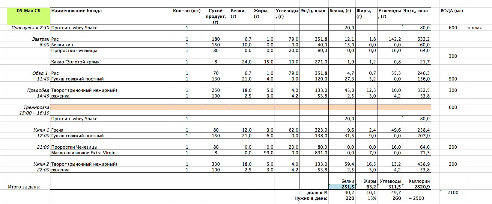 Вечер добрый, поколдовал над рационом на завтра, утренняя тренировка, что скажете?
