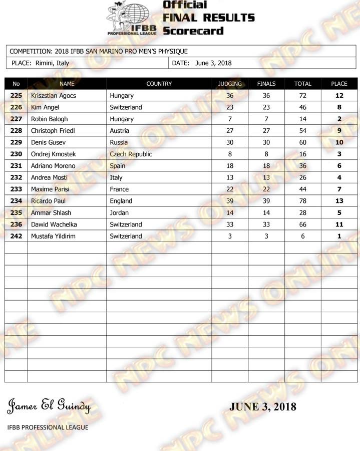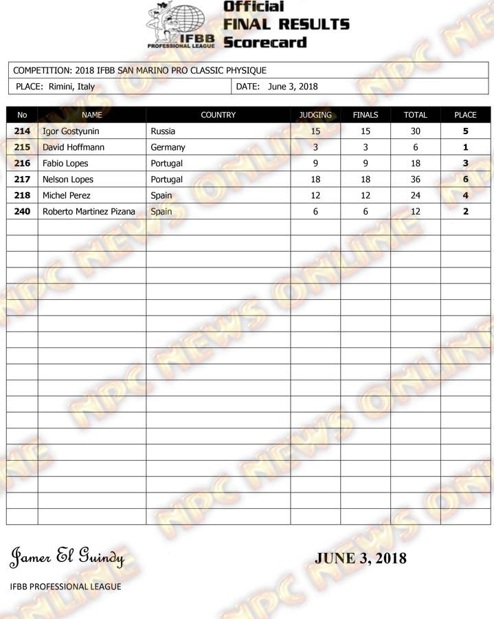 Гостюнин и Гусев - официальные результаты San Marino Pro 2018
