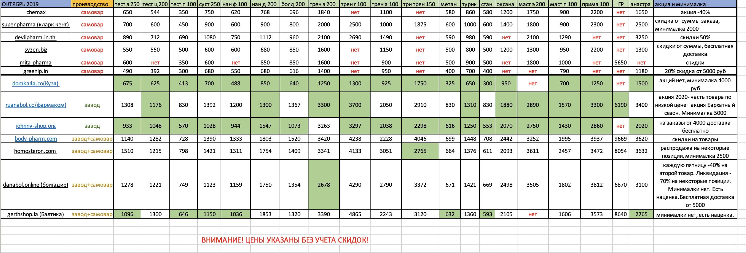 Я в трене а не выделил третью цифру самую выгодную из всего списка- это руанабол. А так вроде везде зелёное это самая выгодная цена на данный период времени , если учитывать пересчёт по дв, так как много фирм делаю трен а в дозировке 75